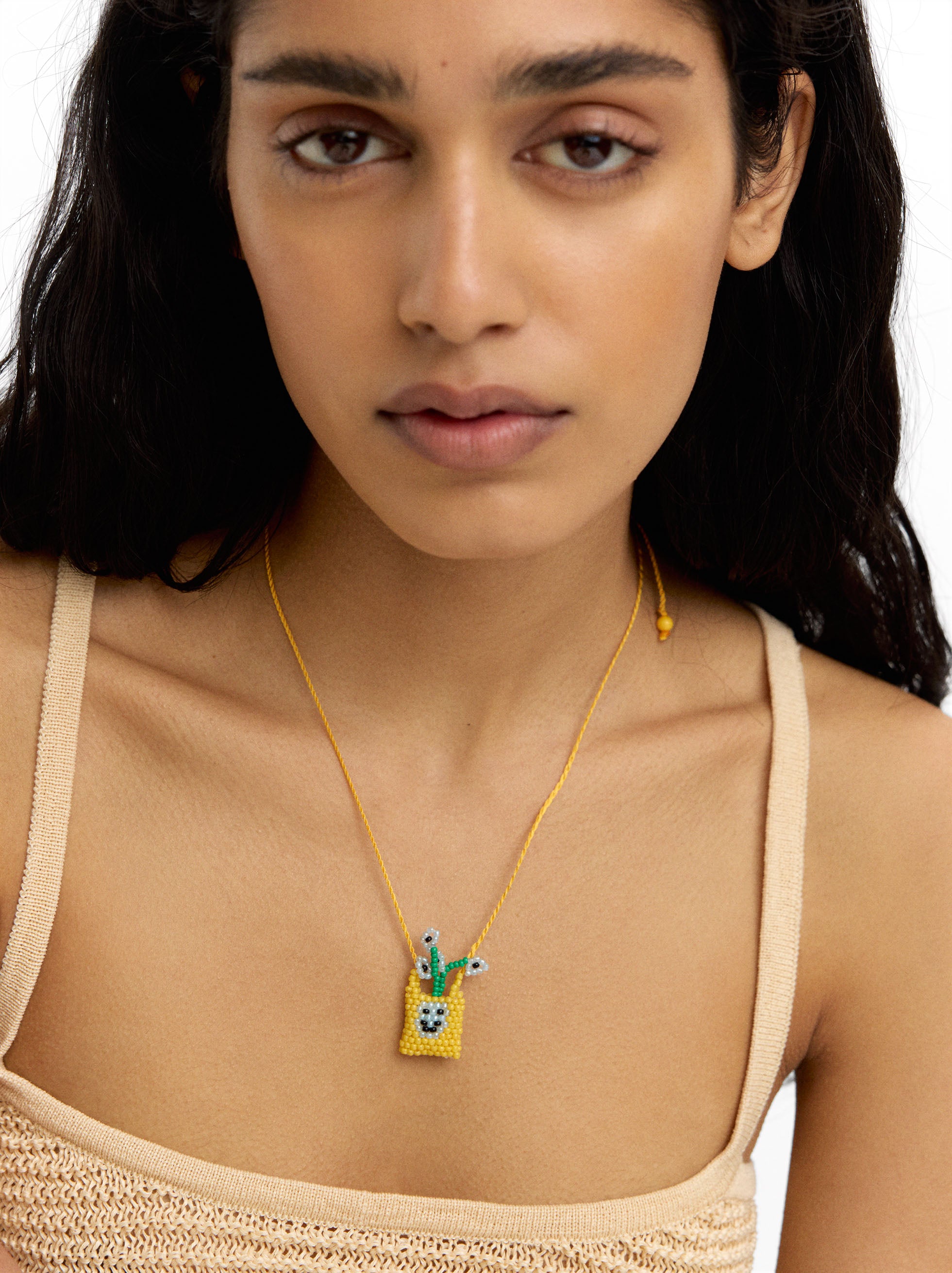 Collar Largo Jarrón De Flores De Abalorios