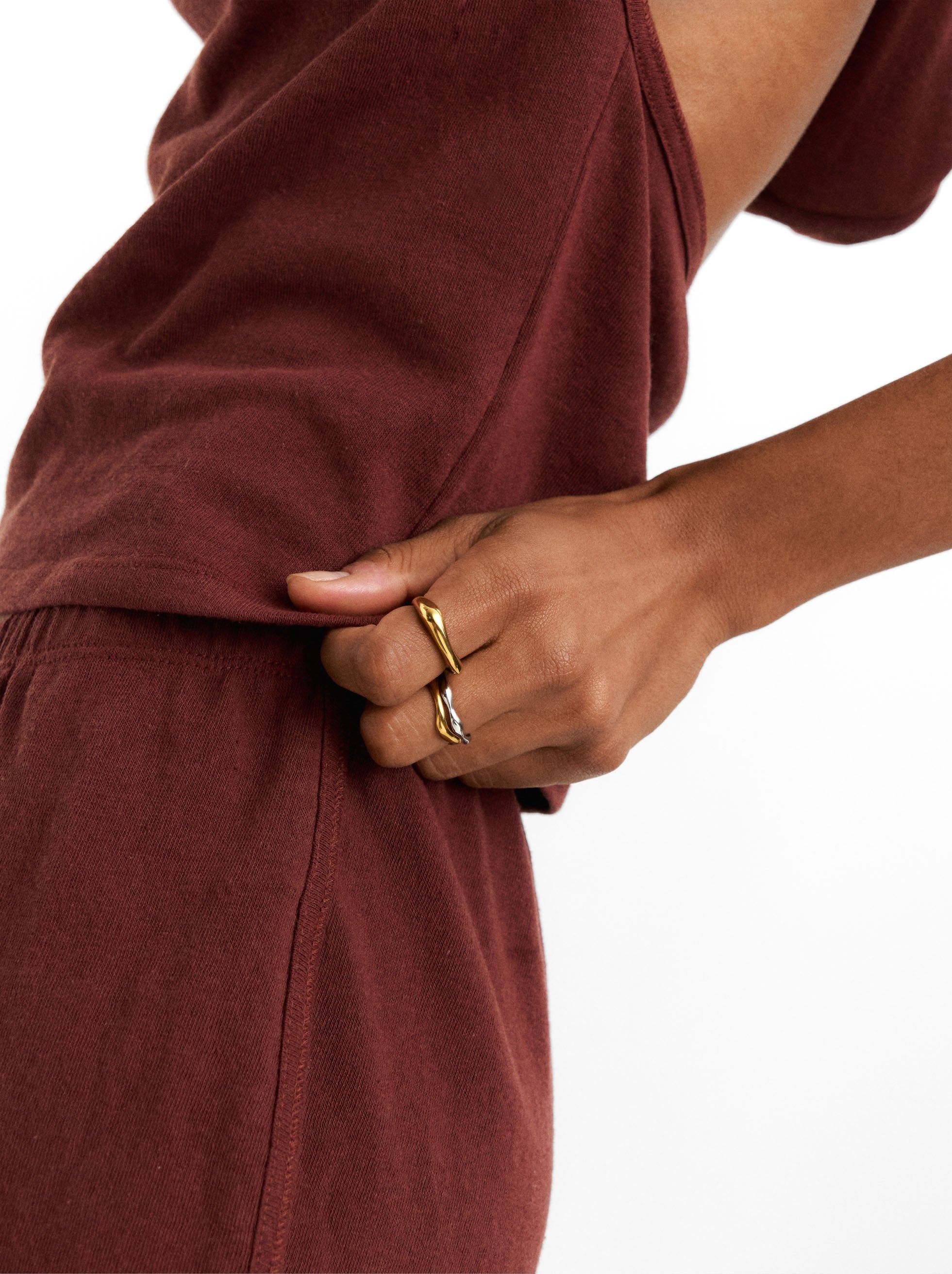 Set De Anillos Ondulados Bicolor - Acero Inoxidable