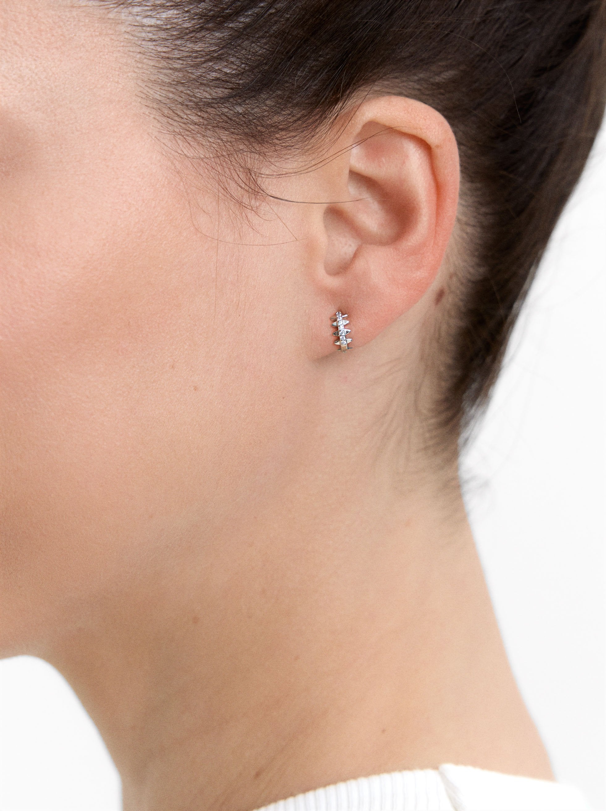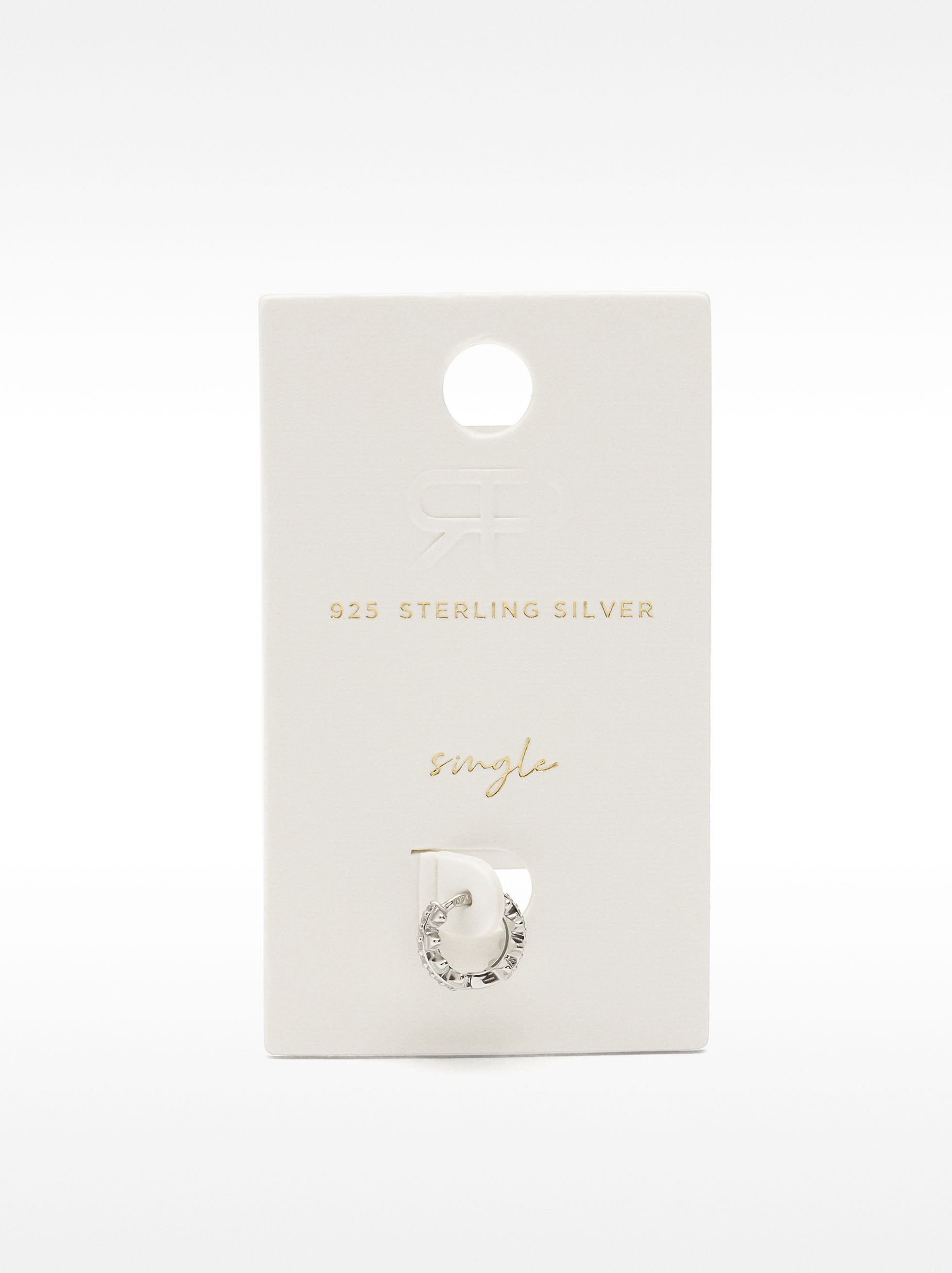 Pendiente Individual Con Circonitas Y Relieve - Plata De Ley 925