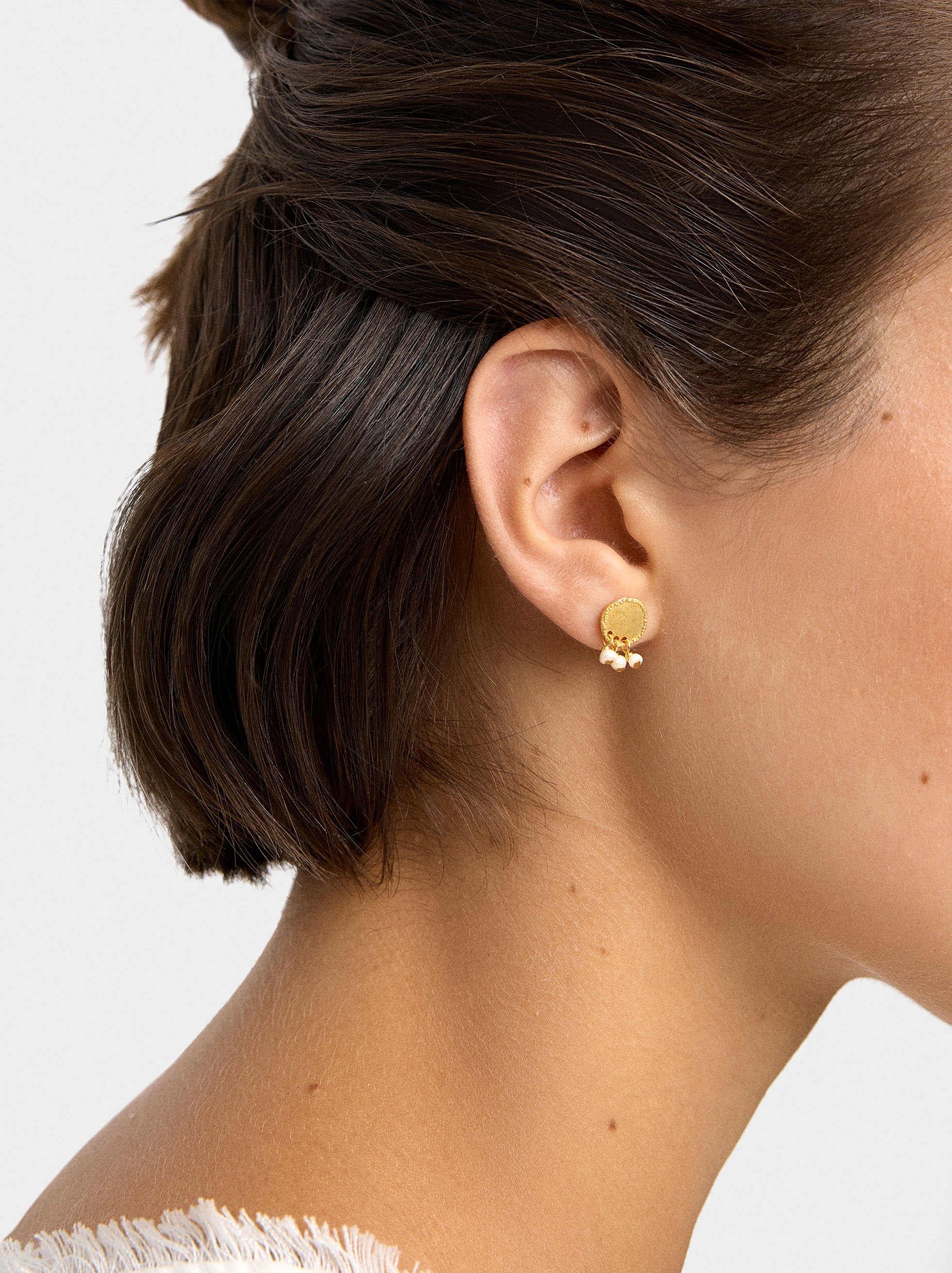 Pendientes Cortos Con Perlas De Agua Dulce - Plata De Ley 925