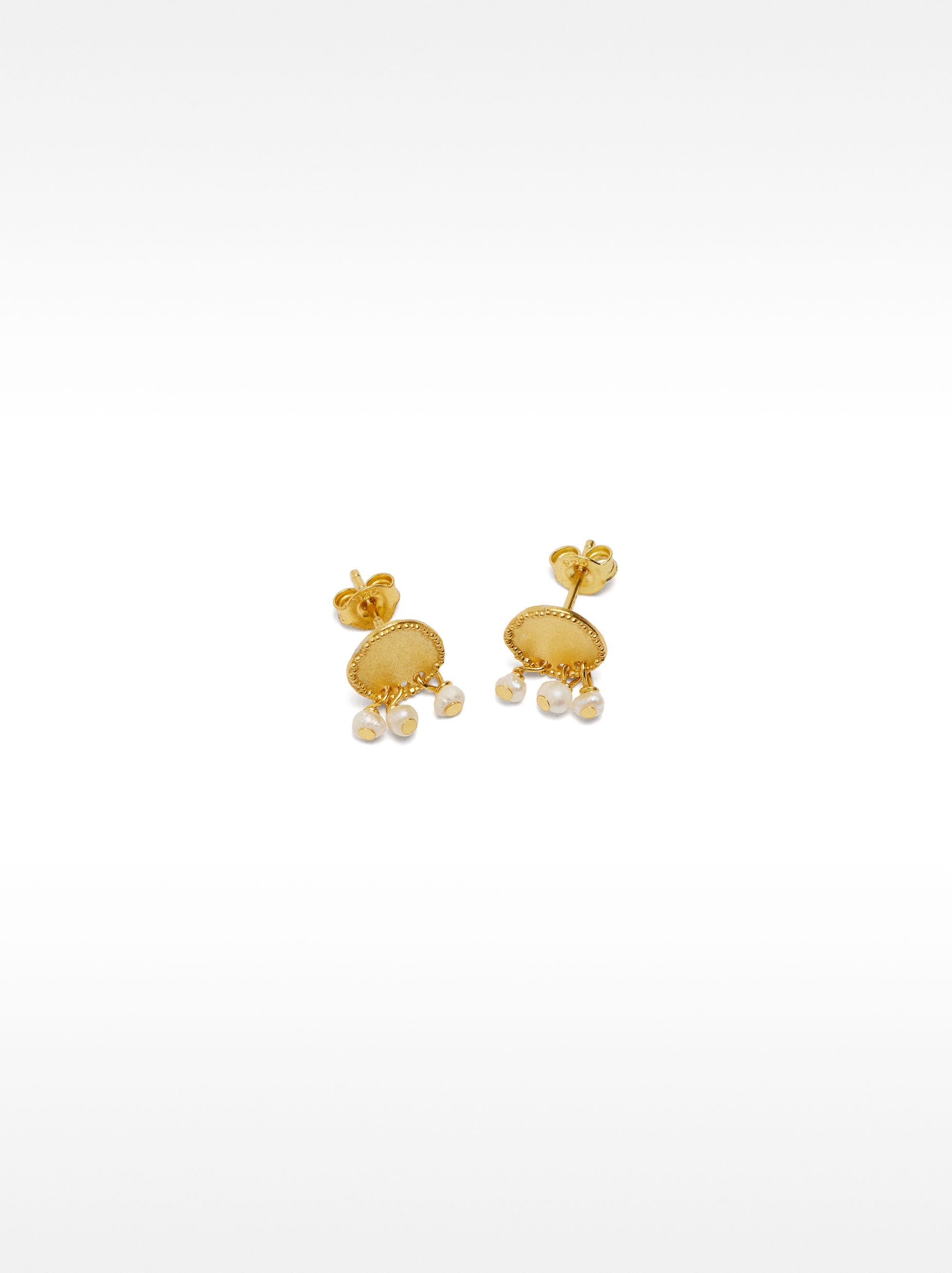 925 Sterling Silver Pearls pendientes botón dorado