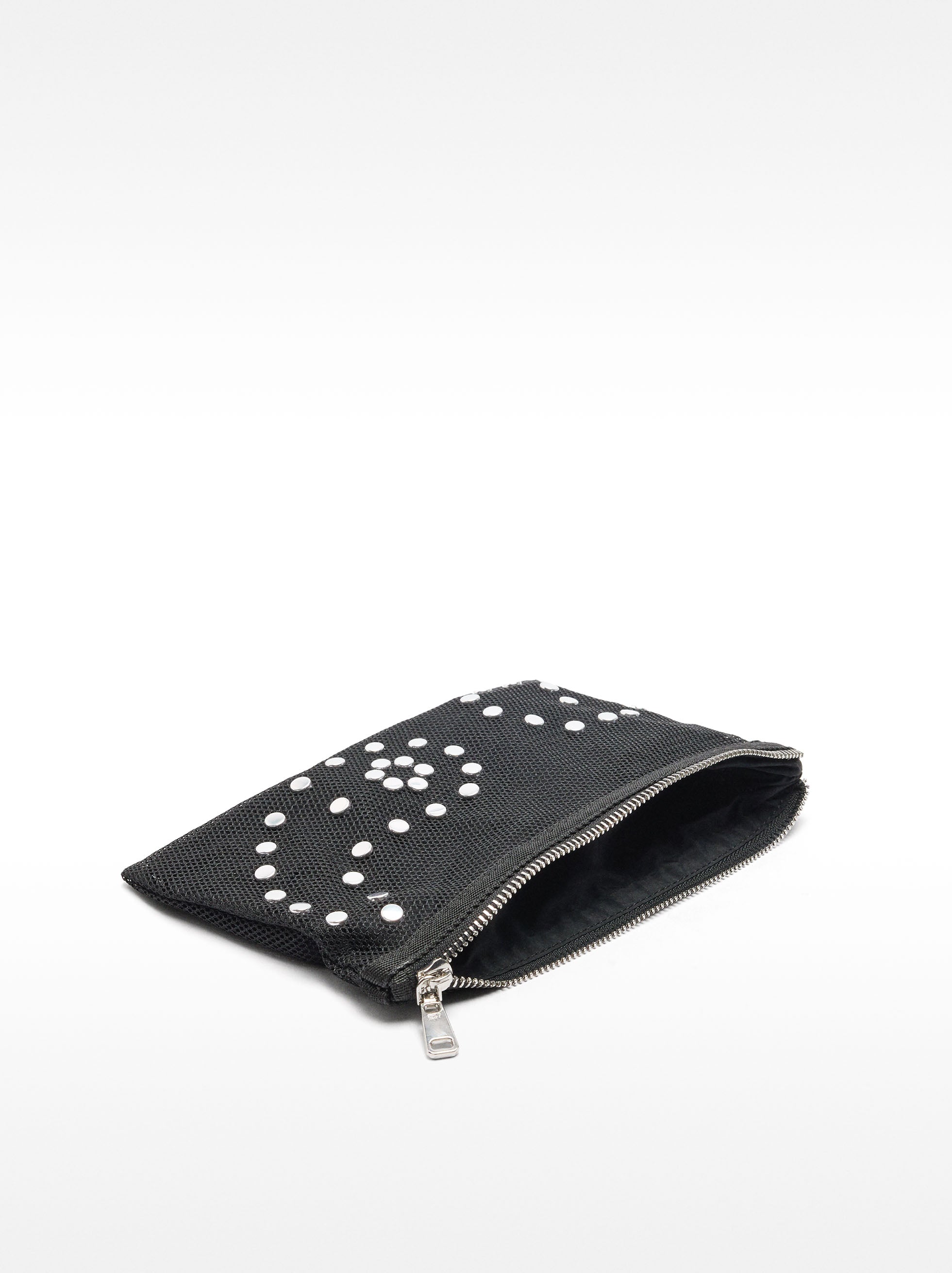 Bolso multiusos de malla con tachuelas. Forro interior. Cierre de cremallera.