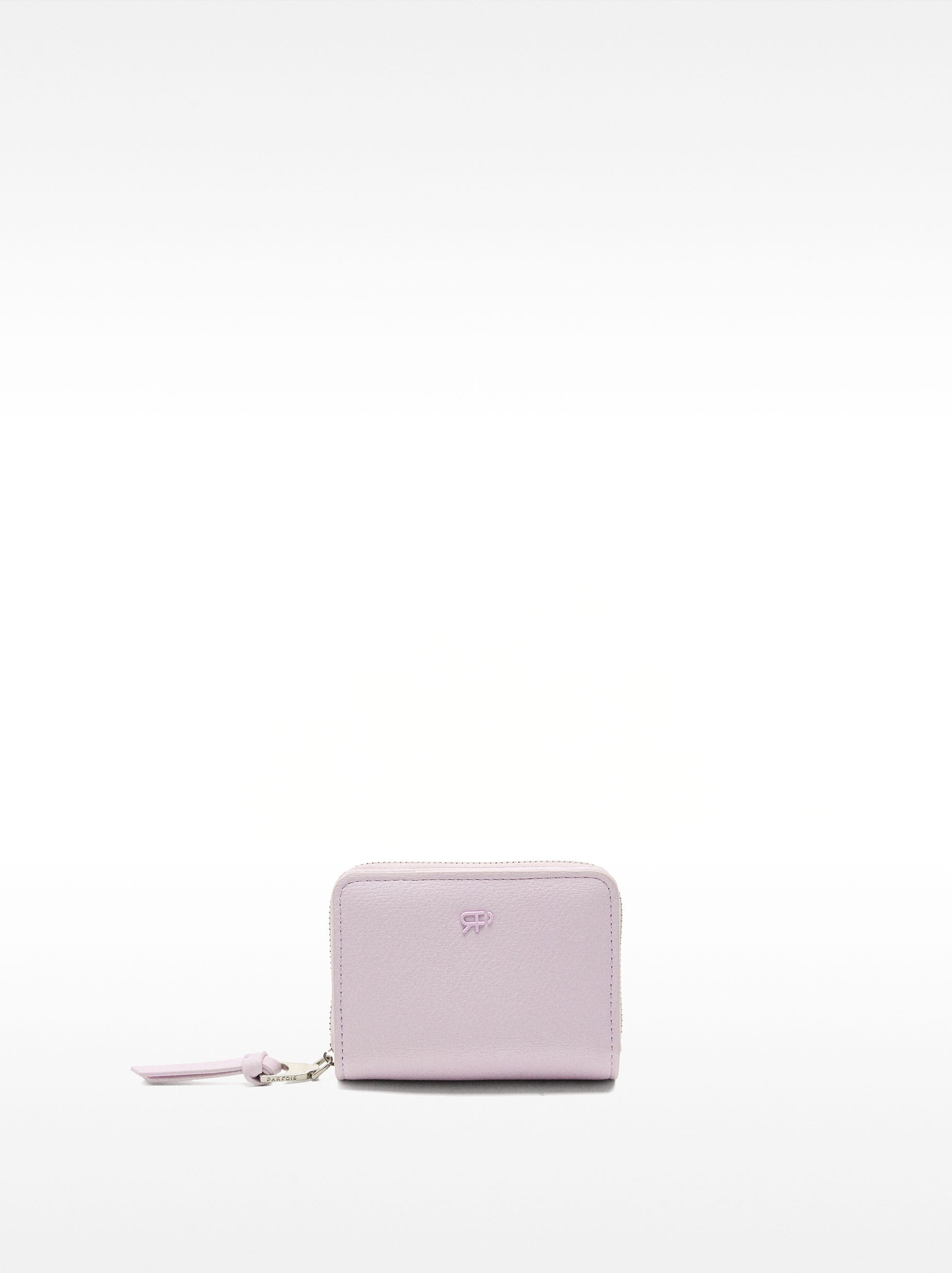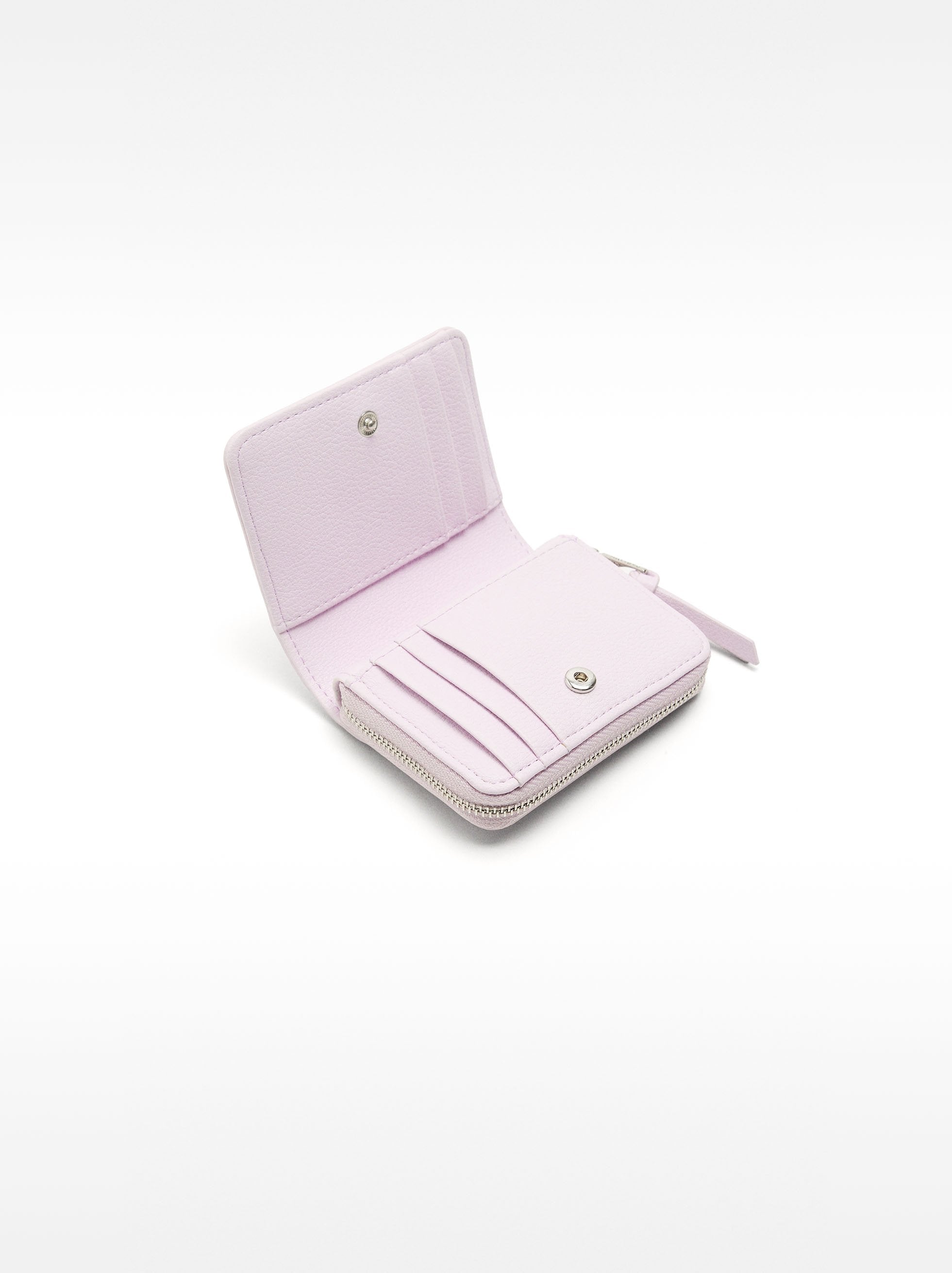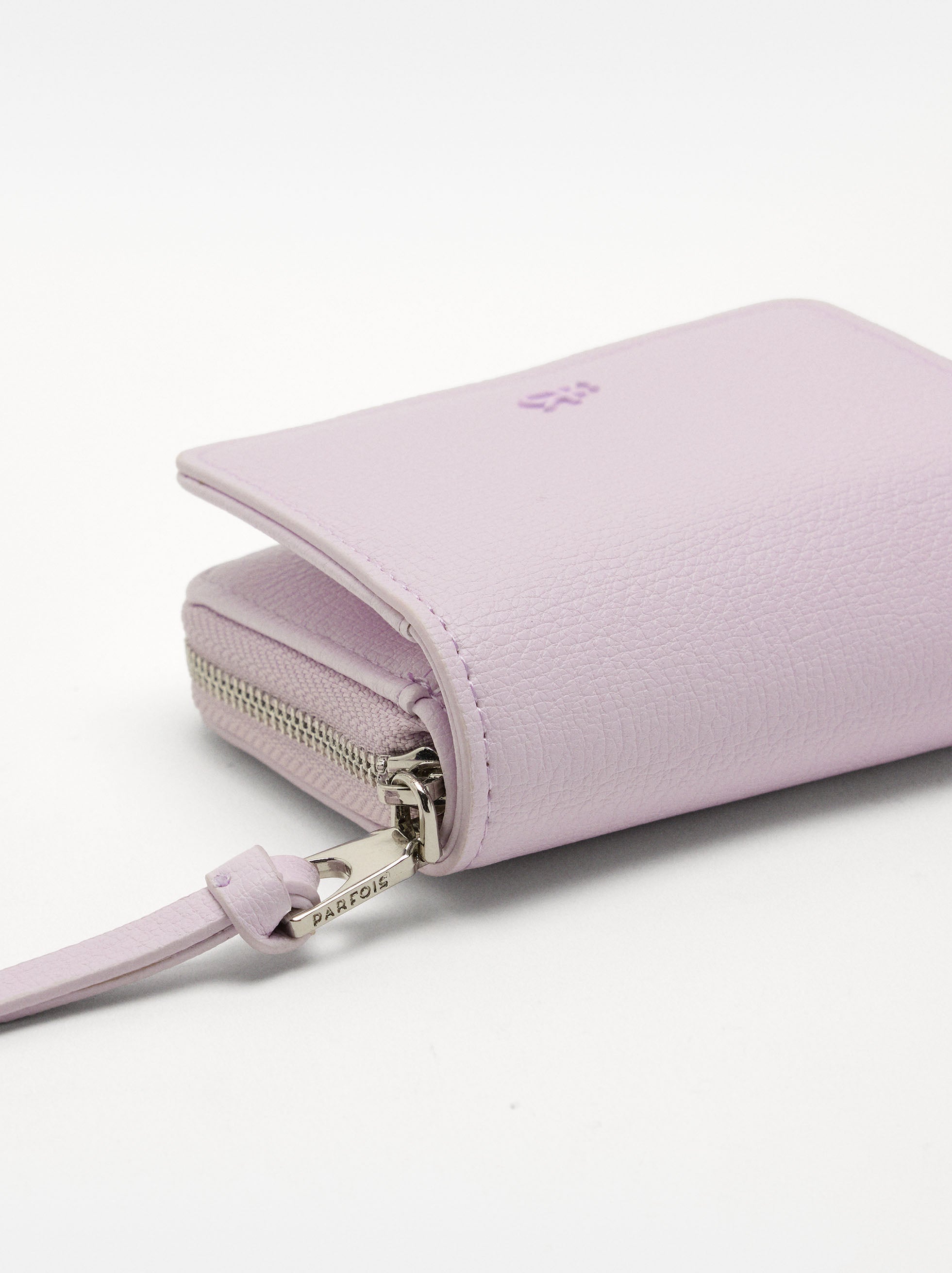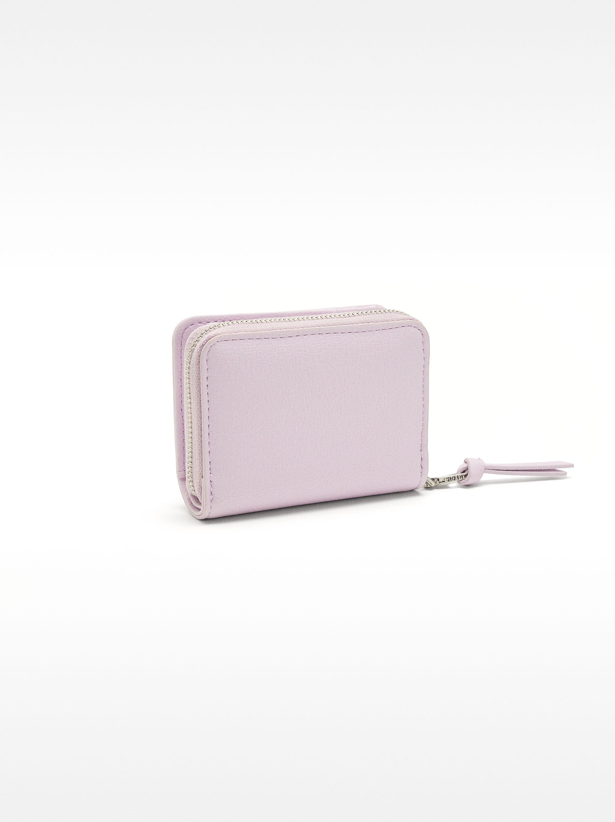 Cartera básica con textura. División con ranuras para tarjetas y billetes; cierre con botón a presión. Compartimento con cierre de cremallera para monedas.