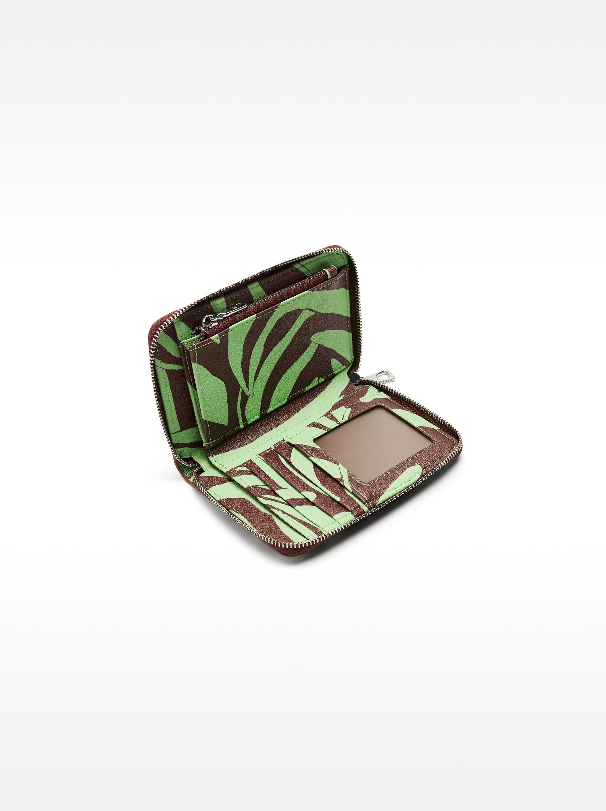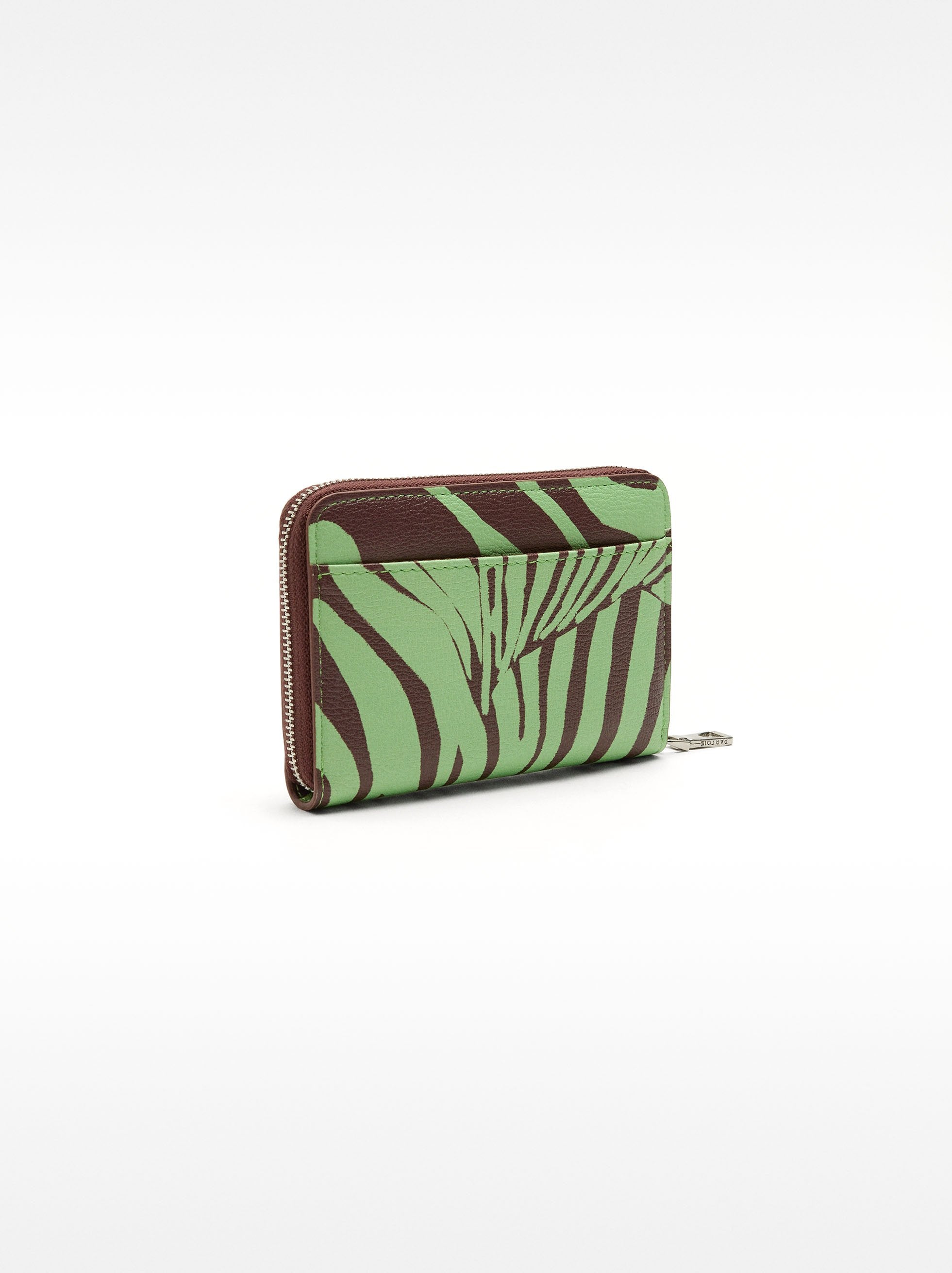 Cartera con estampado y textura. Cierre de cremallera. Ranuras para tarjetas y billetes. Compartimento con cierre de cremallera para monedas.