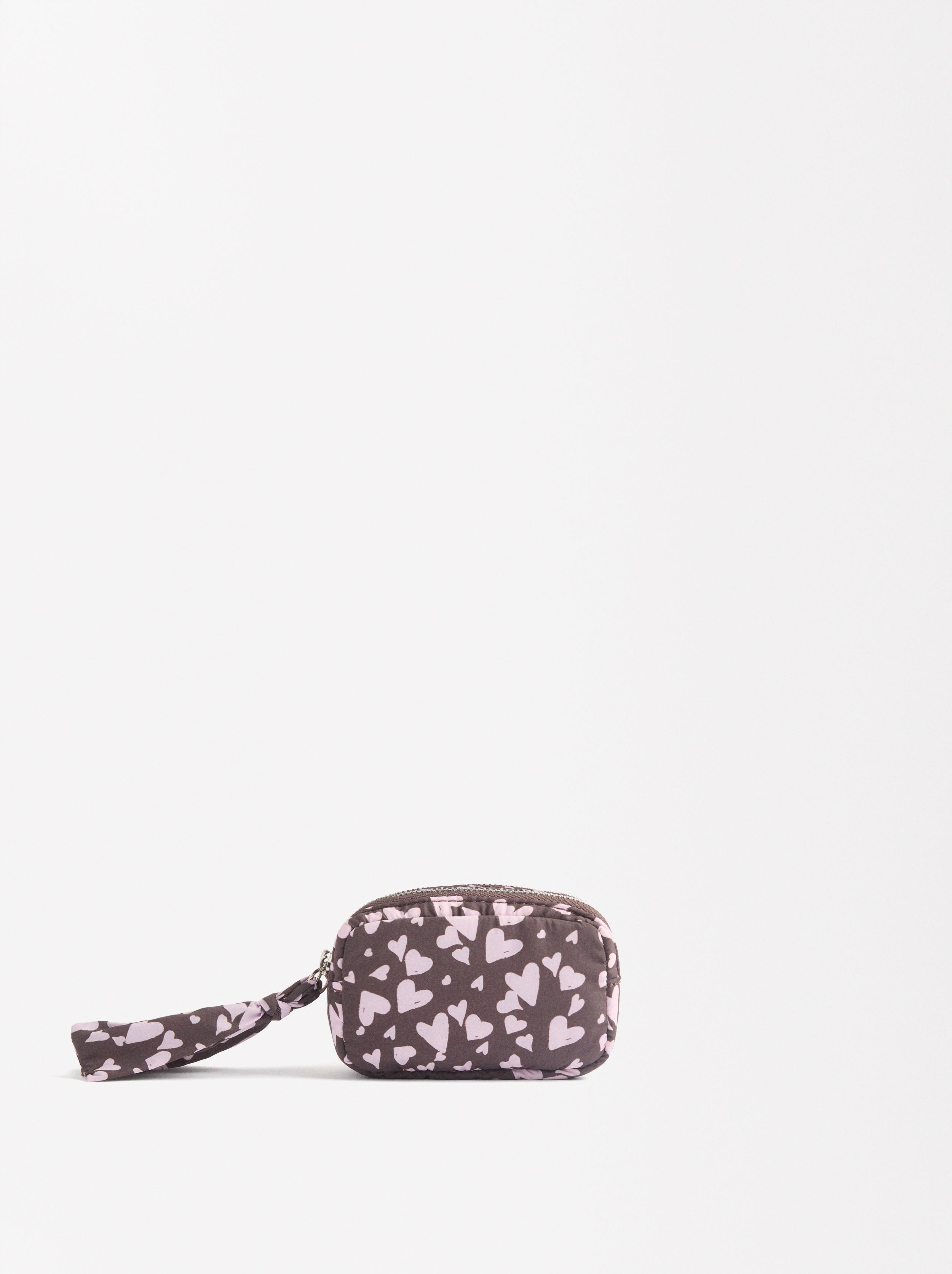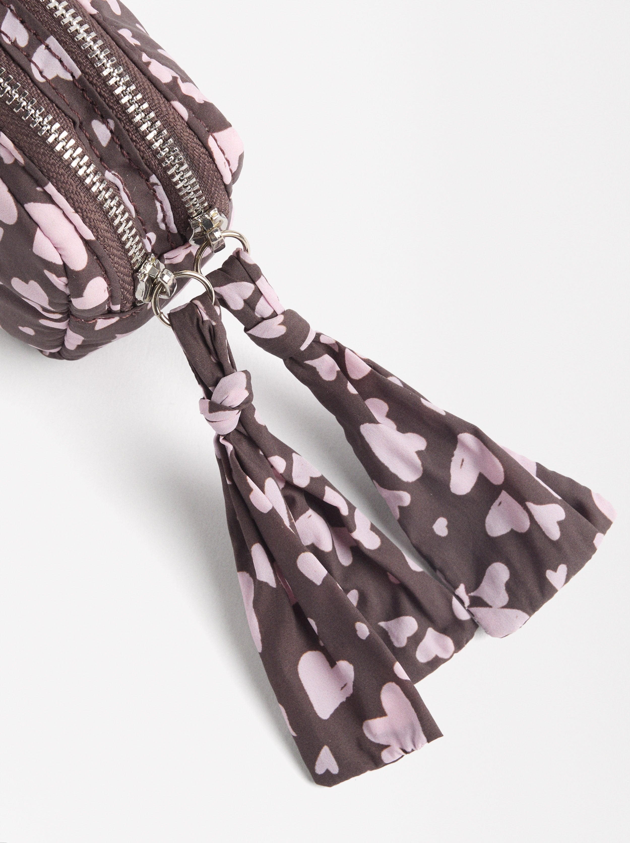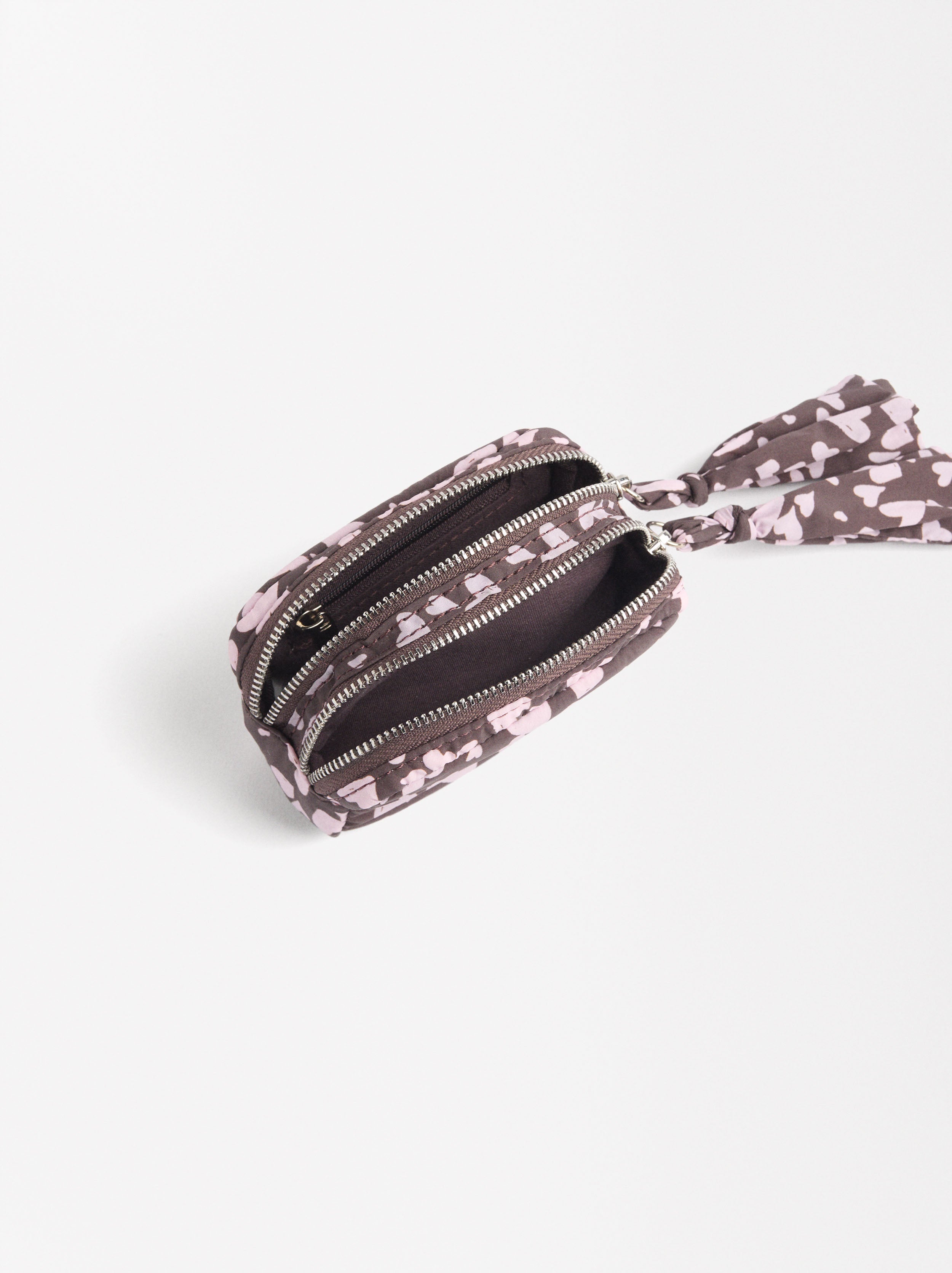 Cartera de nylon con estampado. Cierre de doble cremallera. Forro interior.