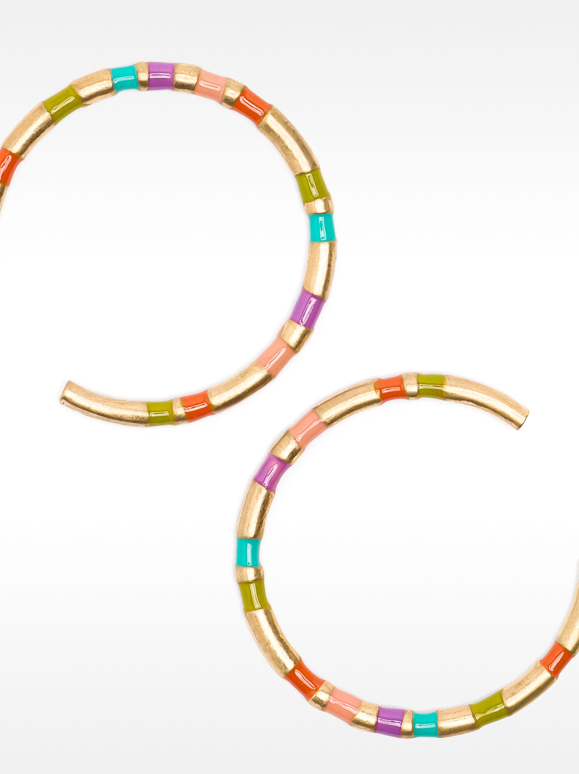Aretes De Aro Esmaltados Segmentados Multicolor