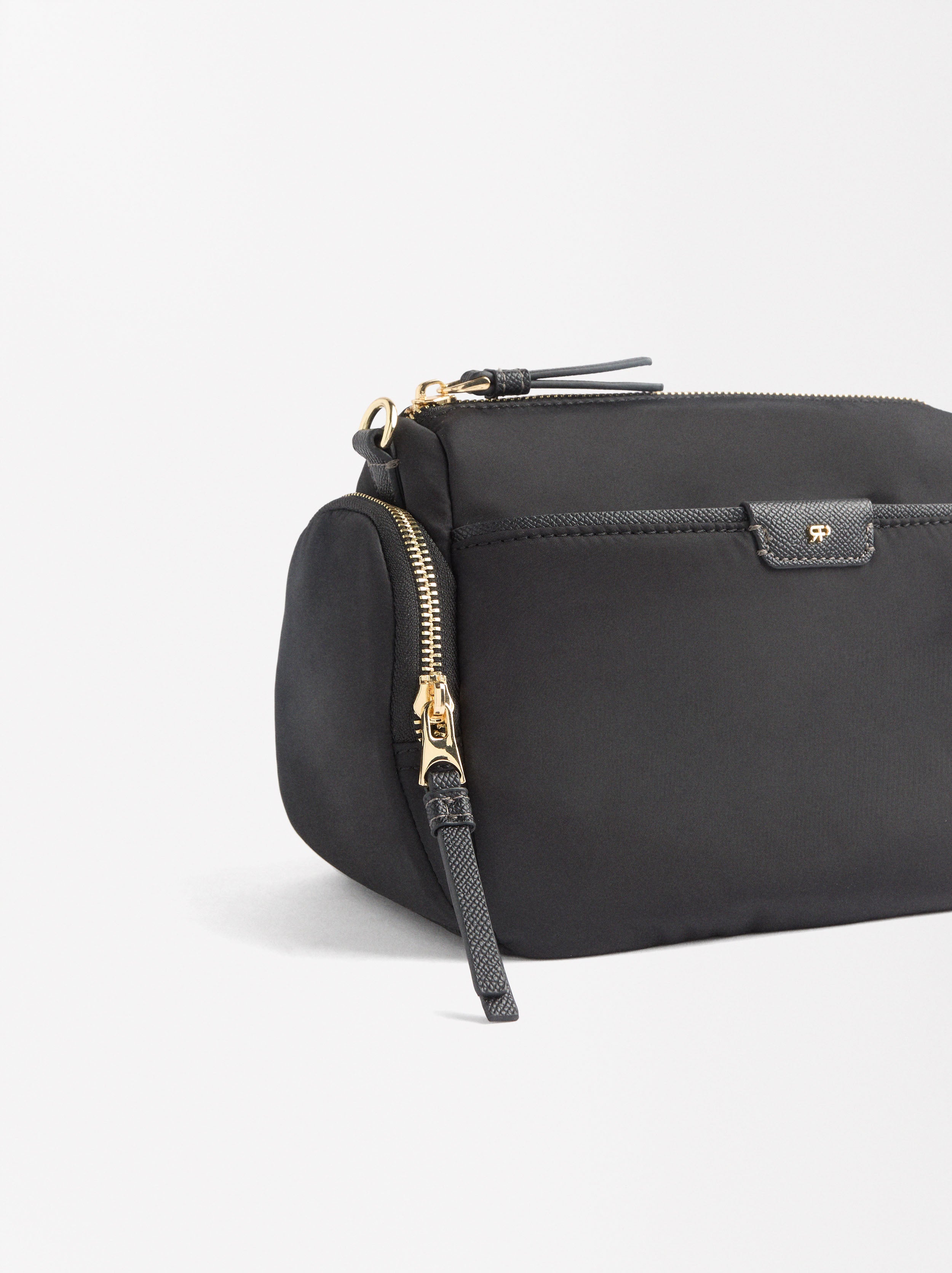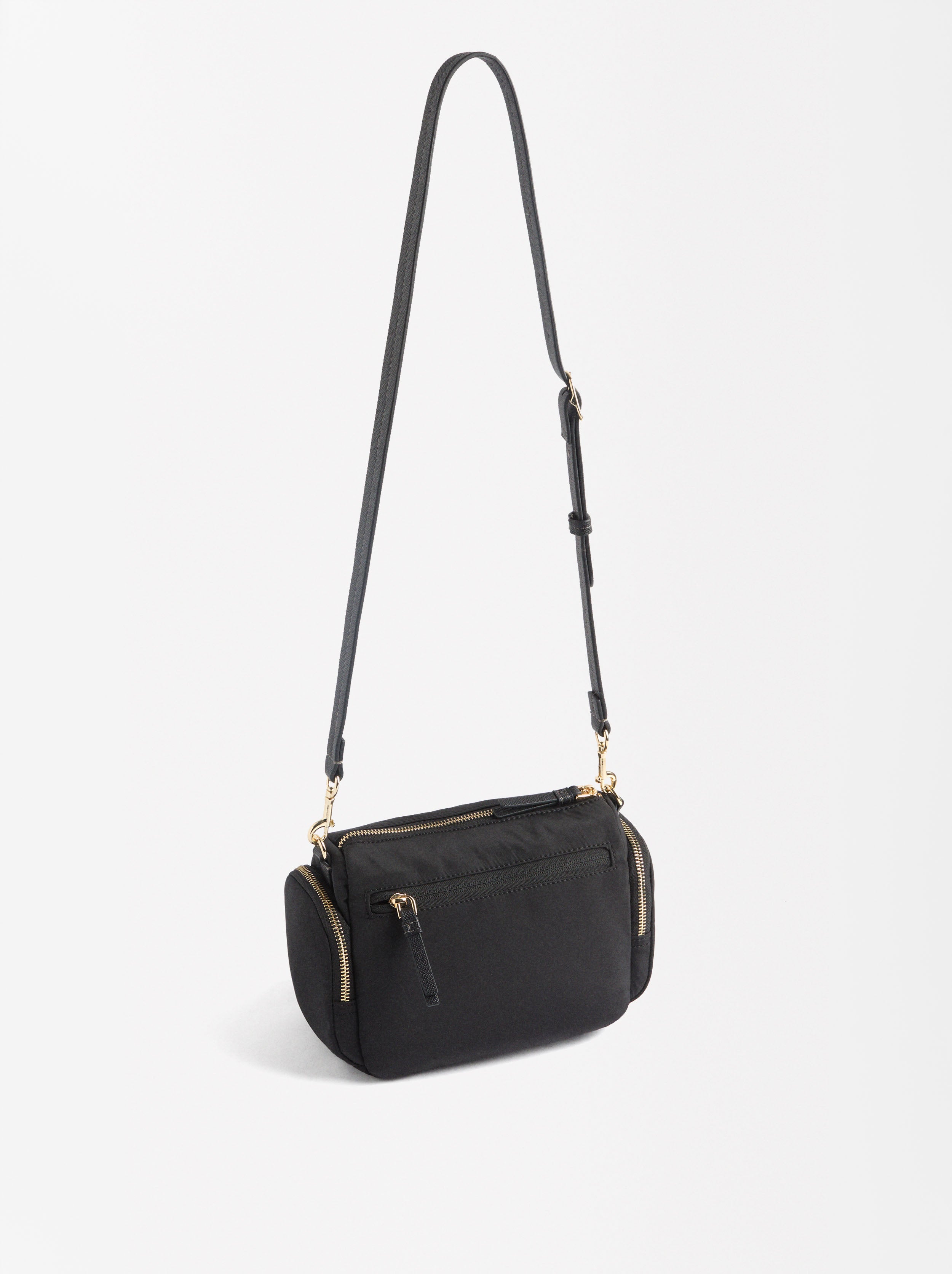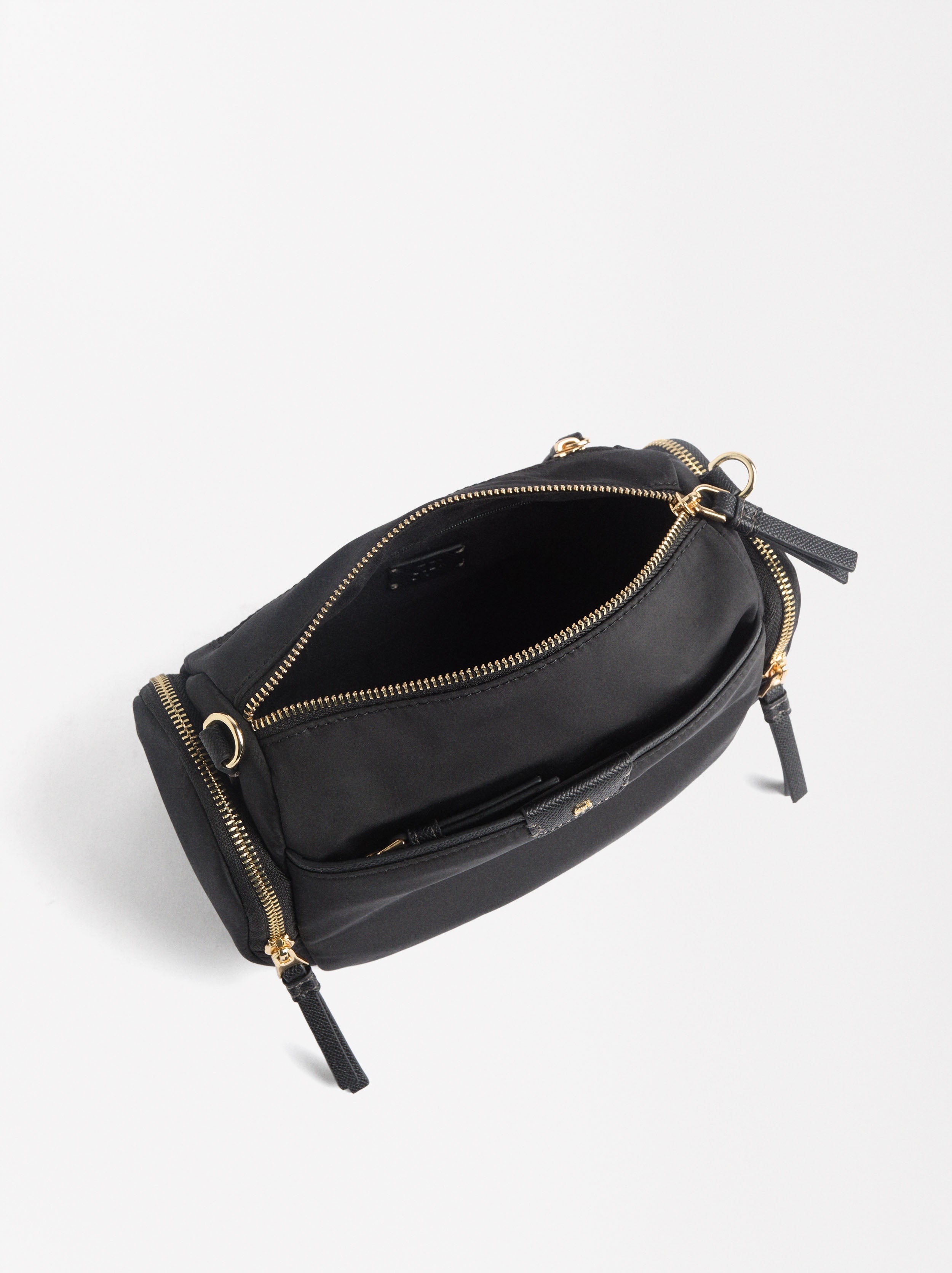 Bolso bandolera de nylon con bolsillos exteriores. Forro y bolsillo interior. Cierre con cremallera. Asa ajustable y extraíble.