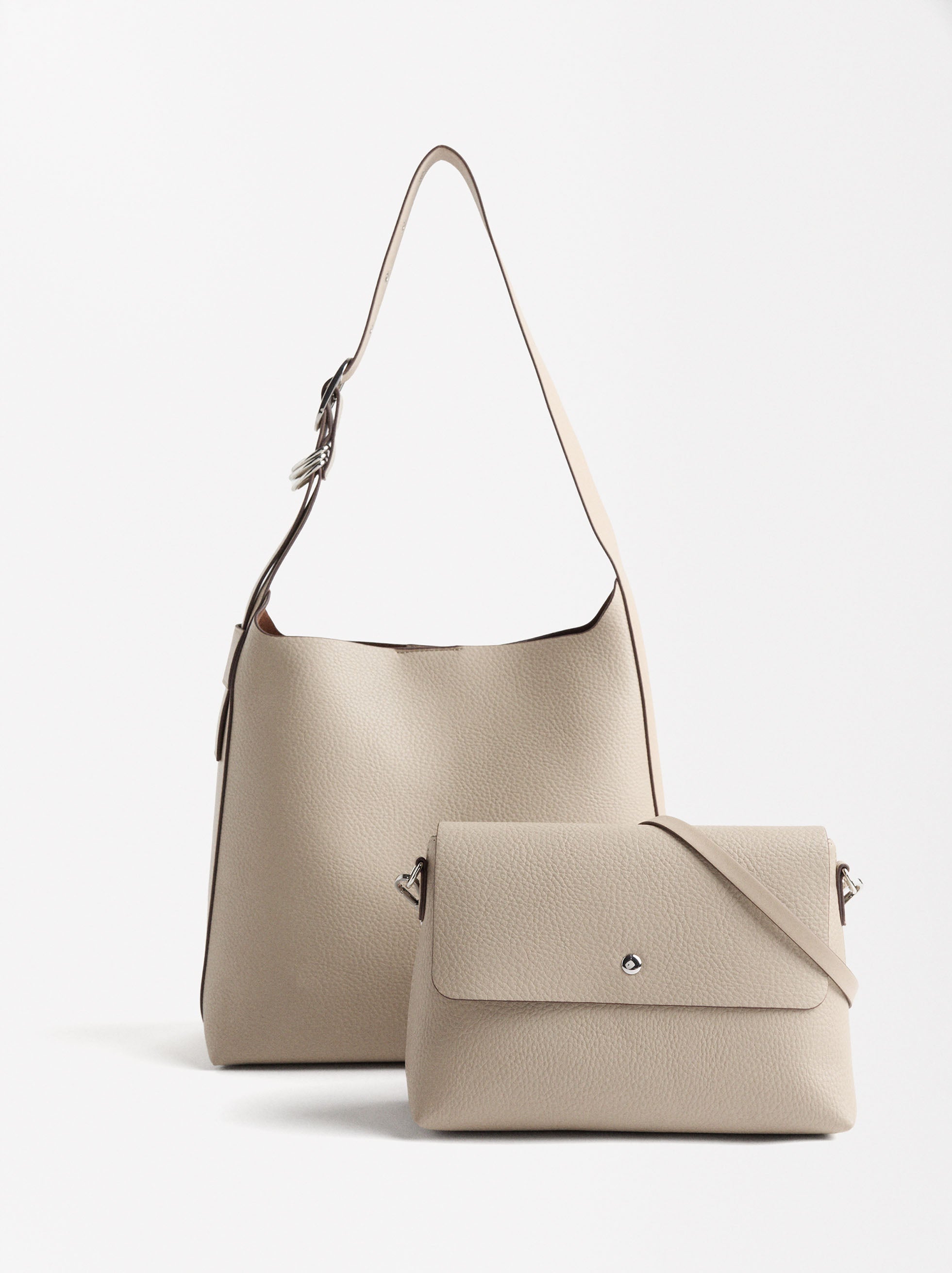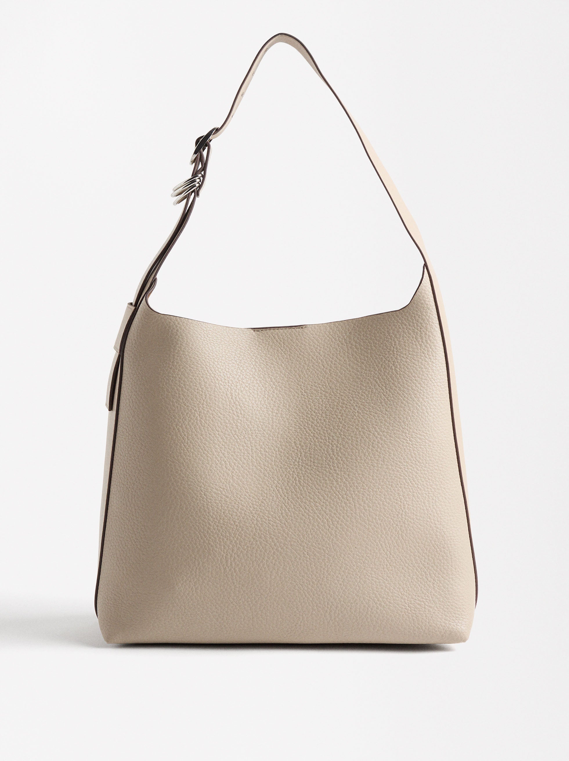 Bolso de hombro con textura. Asa fija ajustable. Cierre de imán. Incluye bolso bandolera con textura y cierre de solapa imantado; asa ajustable y removible. Forro y bolsillo interior.