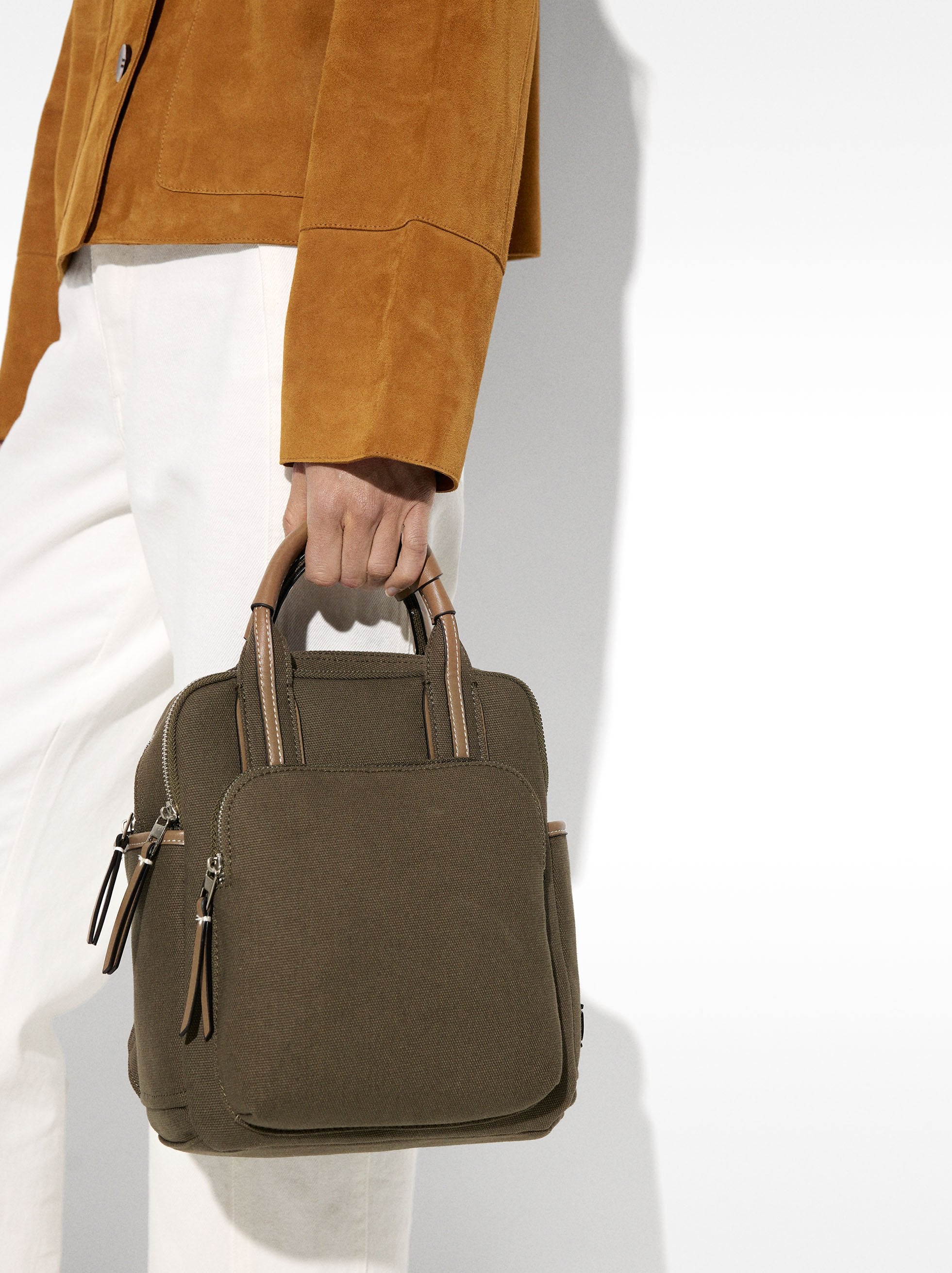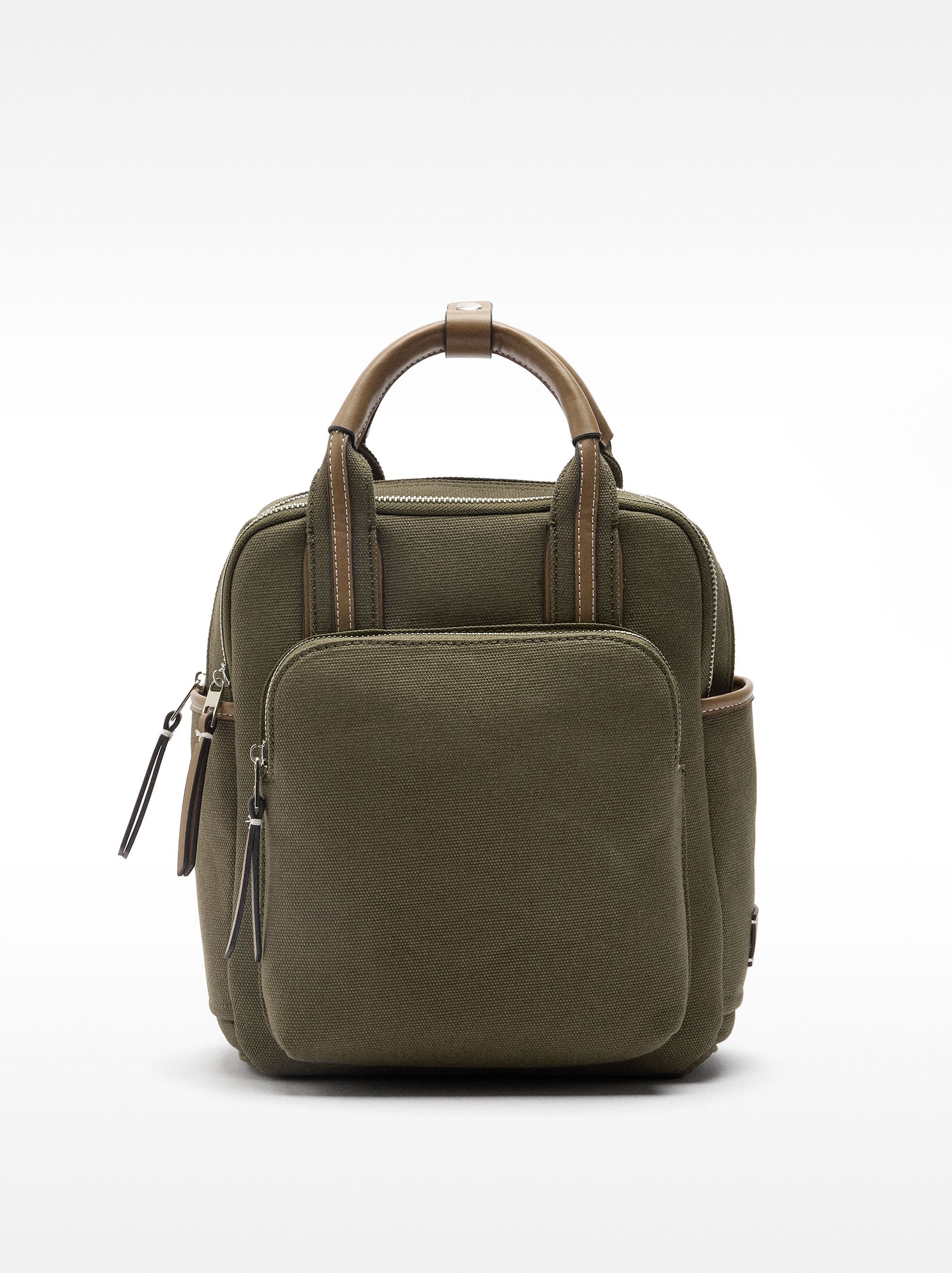 Mochila básica de lona. Forro y bolsillo interior. Aberturas con cierre de cremallera. Bolsillos laterales. Asas traseras fijas. Asas de mano fijas. Bolsillo exterior con cierre de cremallera.