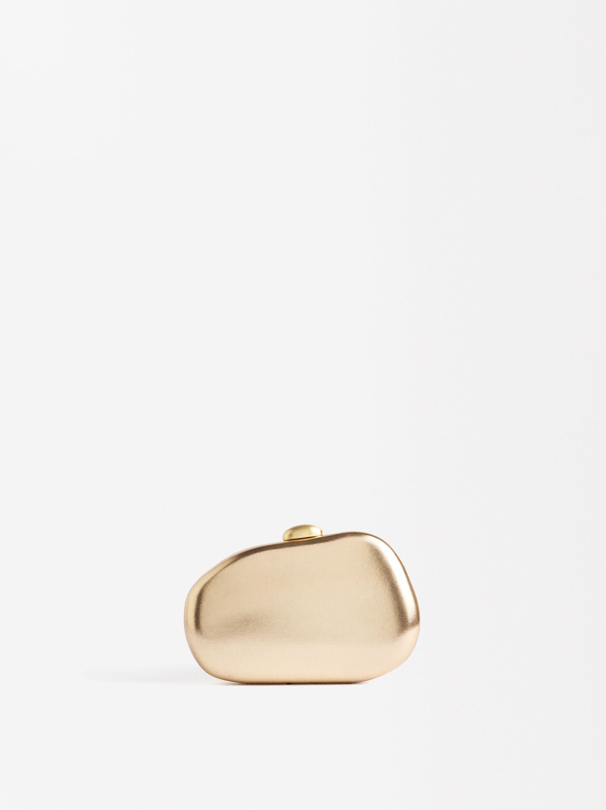 Clutch de fiesta ovalada metalizada con forro interior. Cierre de presión. Asa de cadena removible.