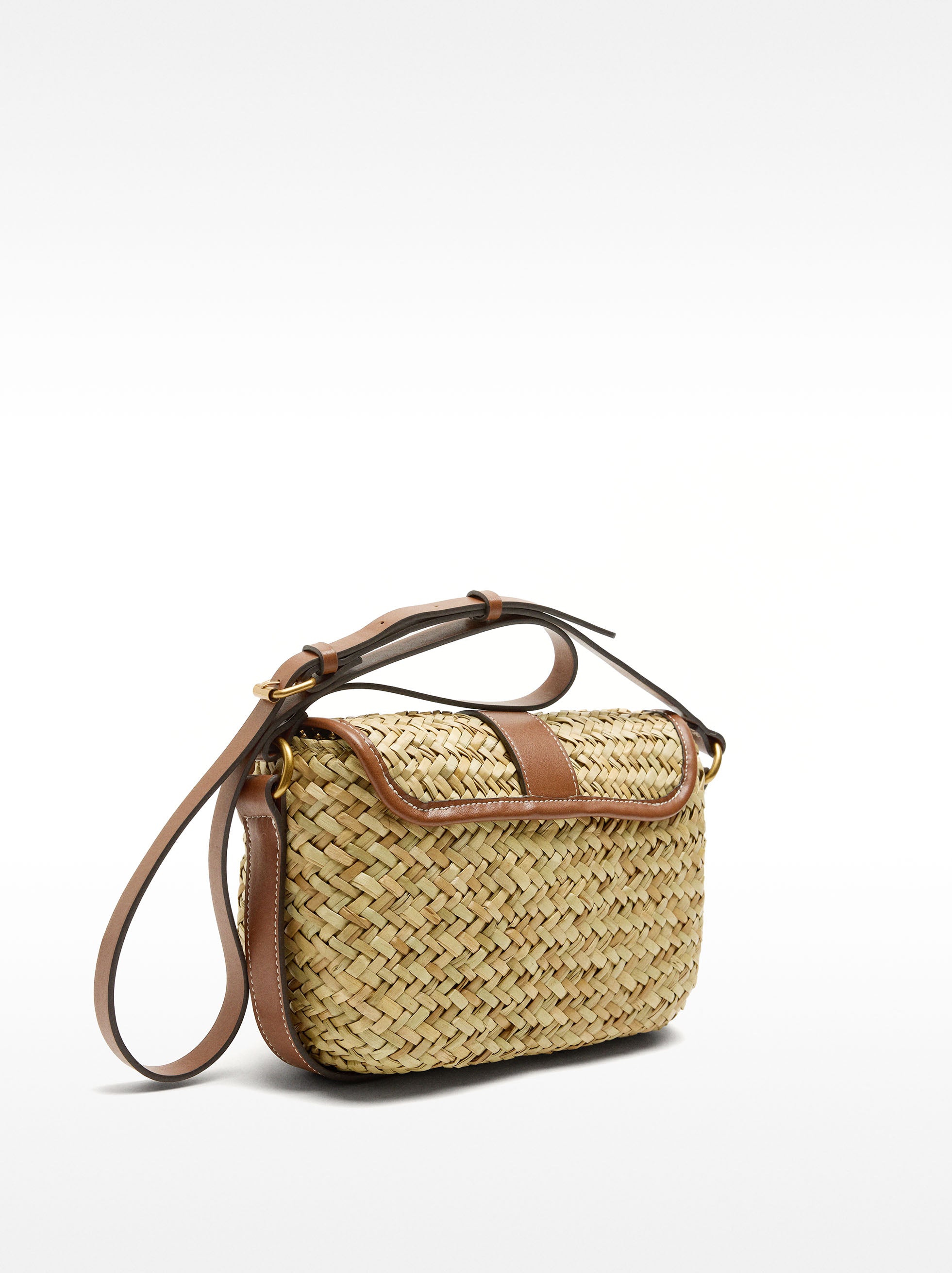 Bolso bandolera estructurado de rafia. Cierre de solapa imantado con detalle de hebilla. Forro y bolsillo interior. Asa fija ajustable.
