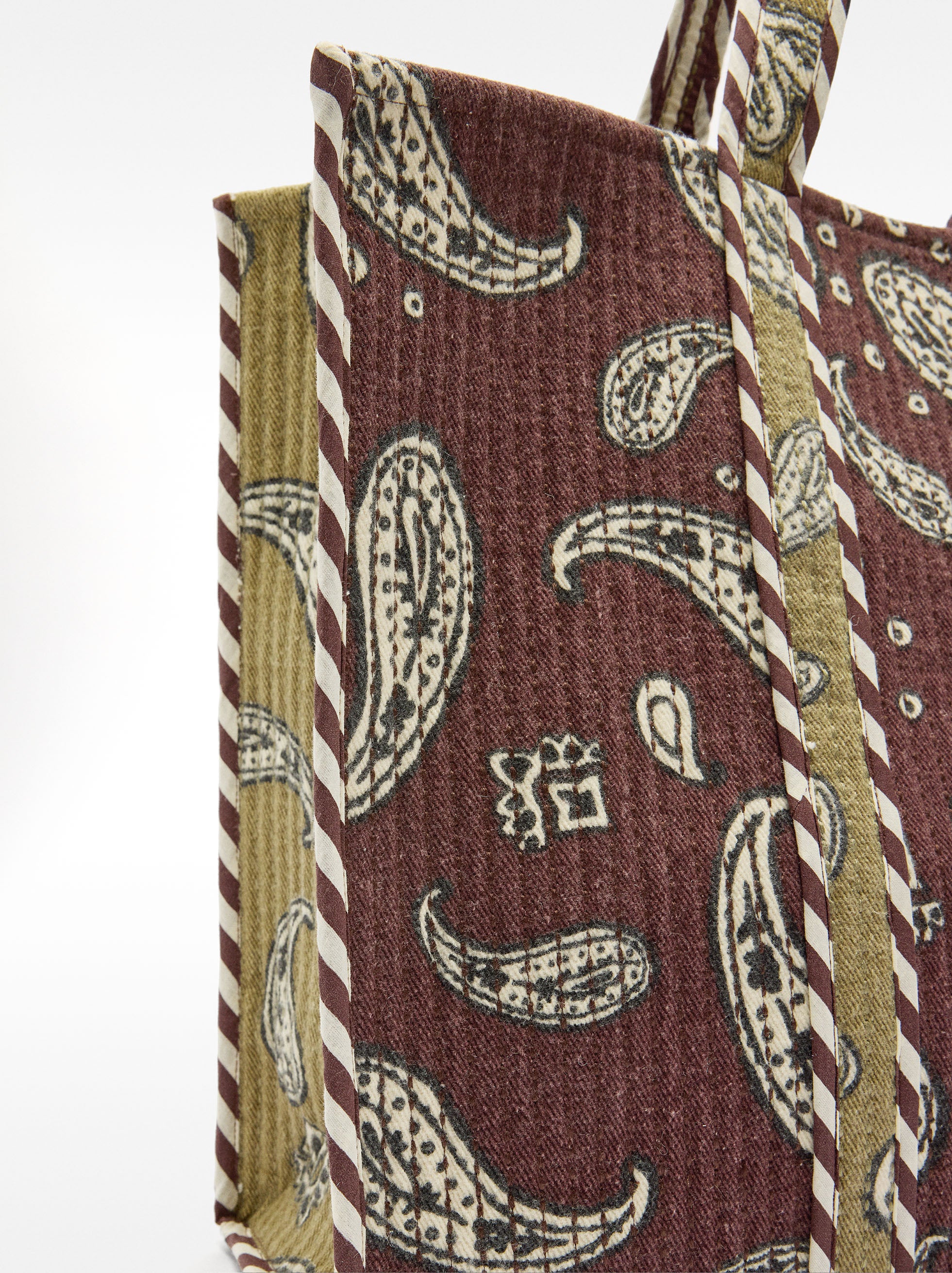 Bolsa Shopper Estampada Con Pespuntes