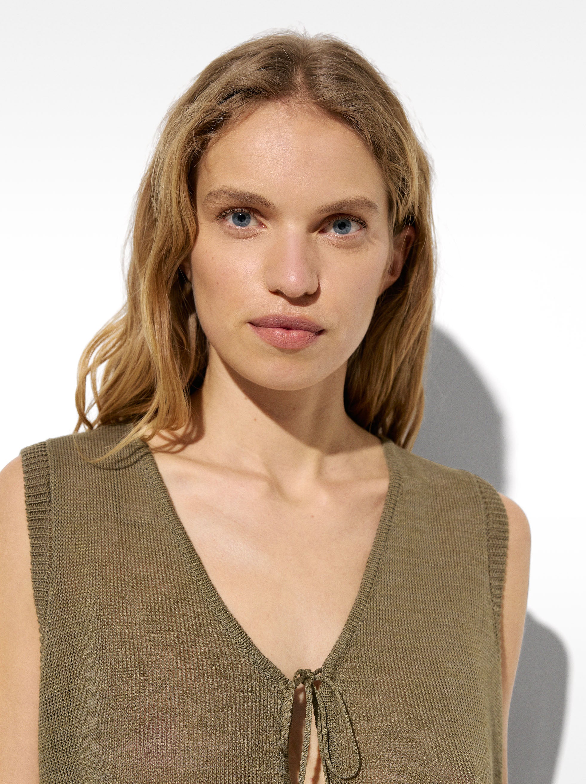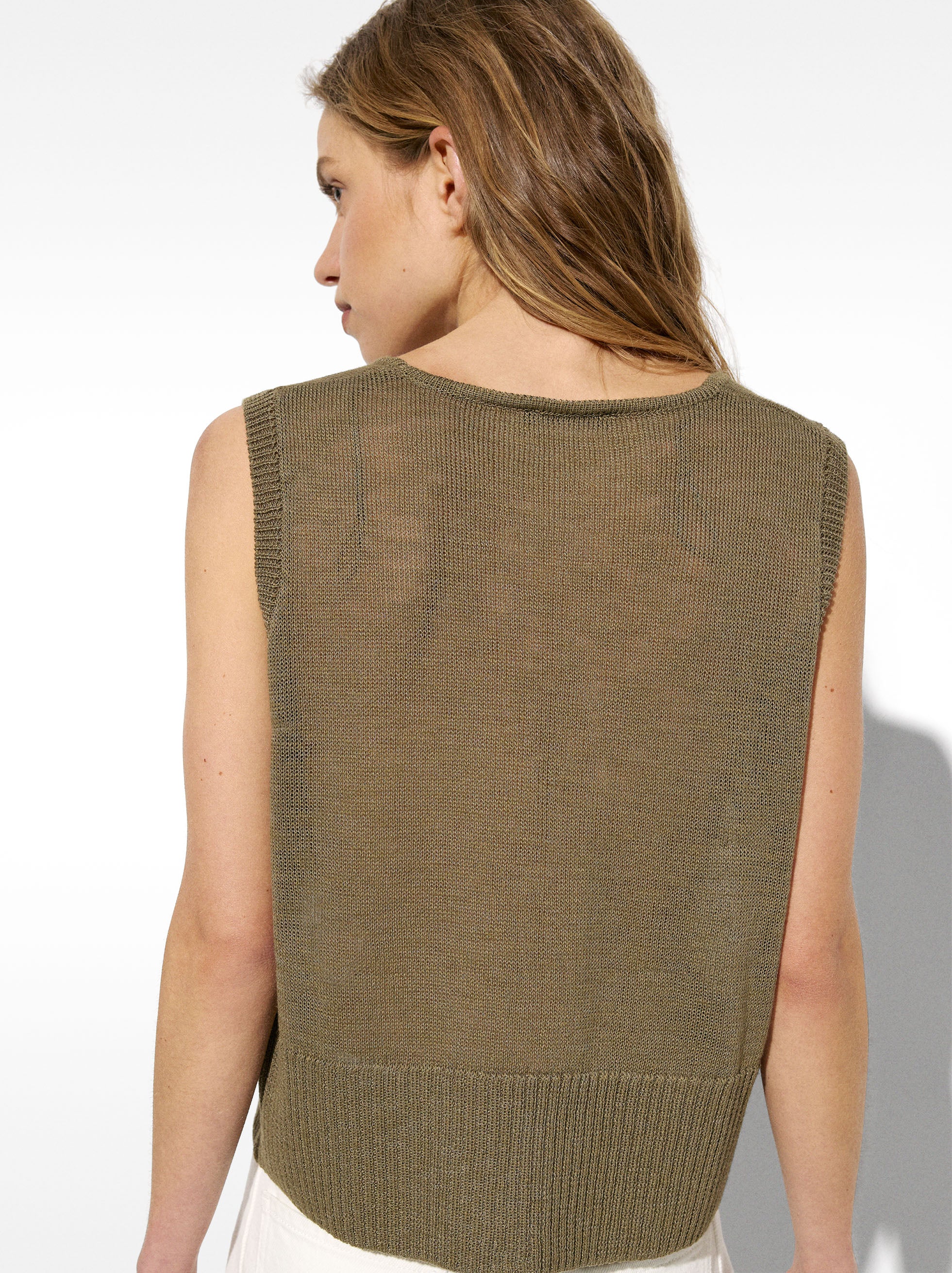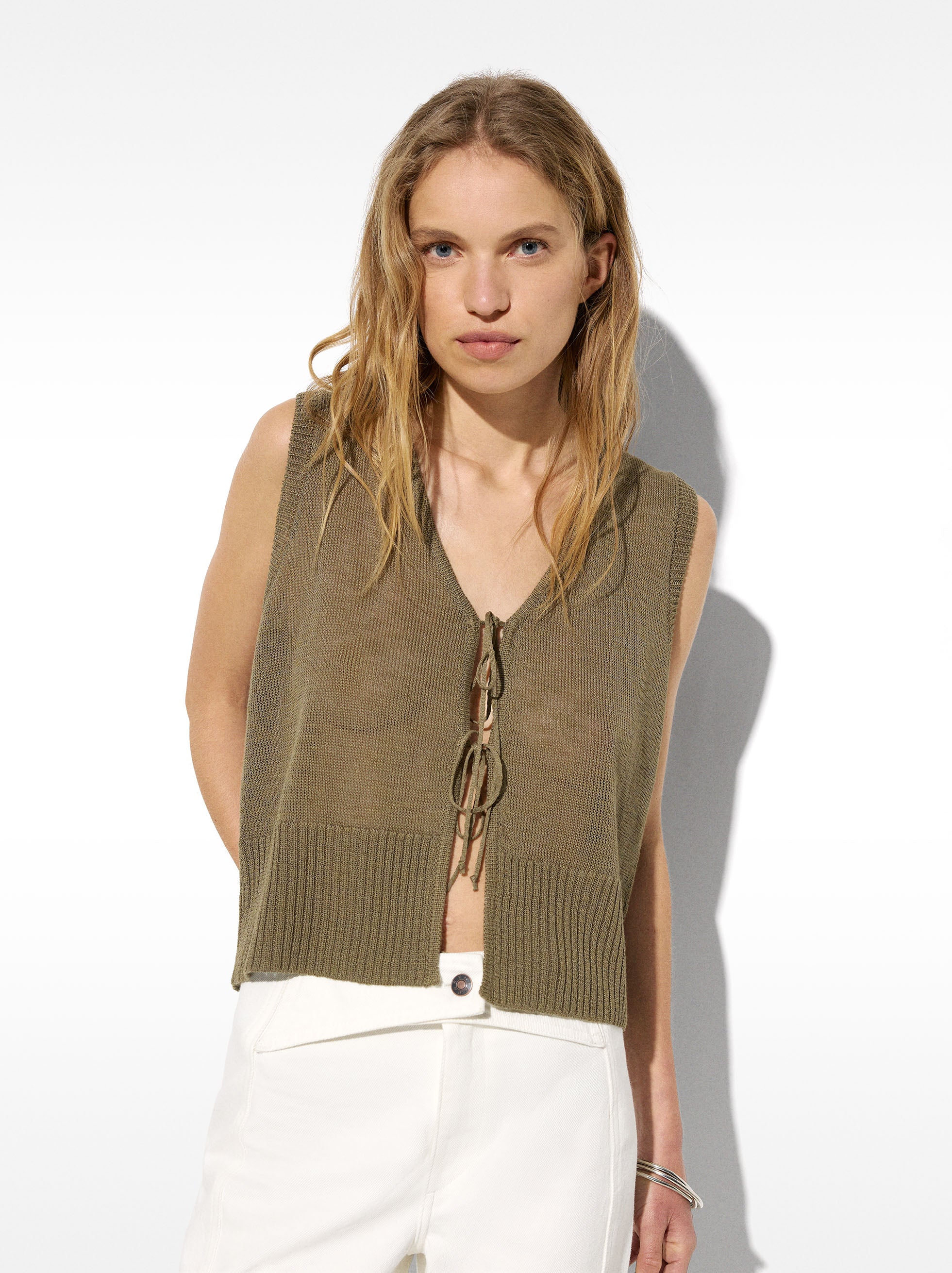 C2 Março chaleco tricotado caqui