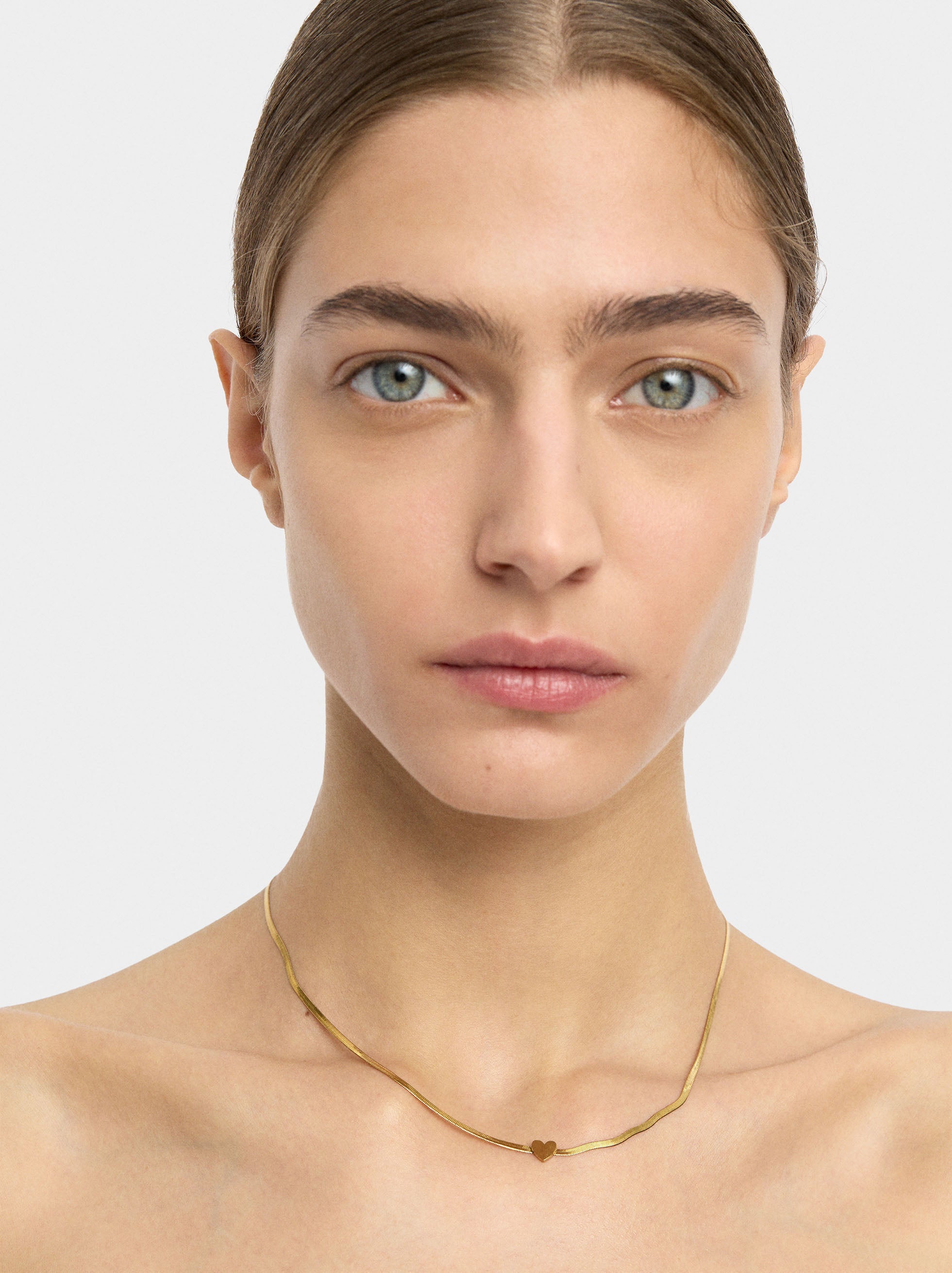 Collar Cadena De Serpiente Corazón - Acero Inoxidable