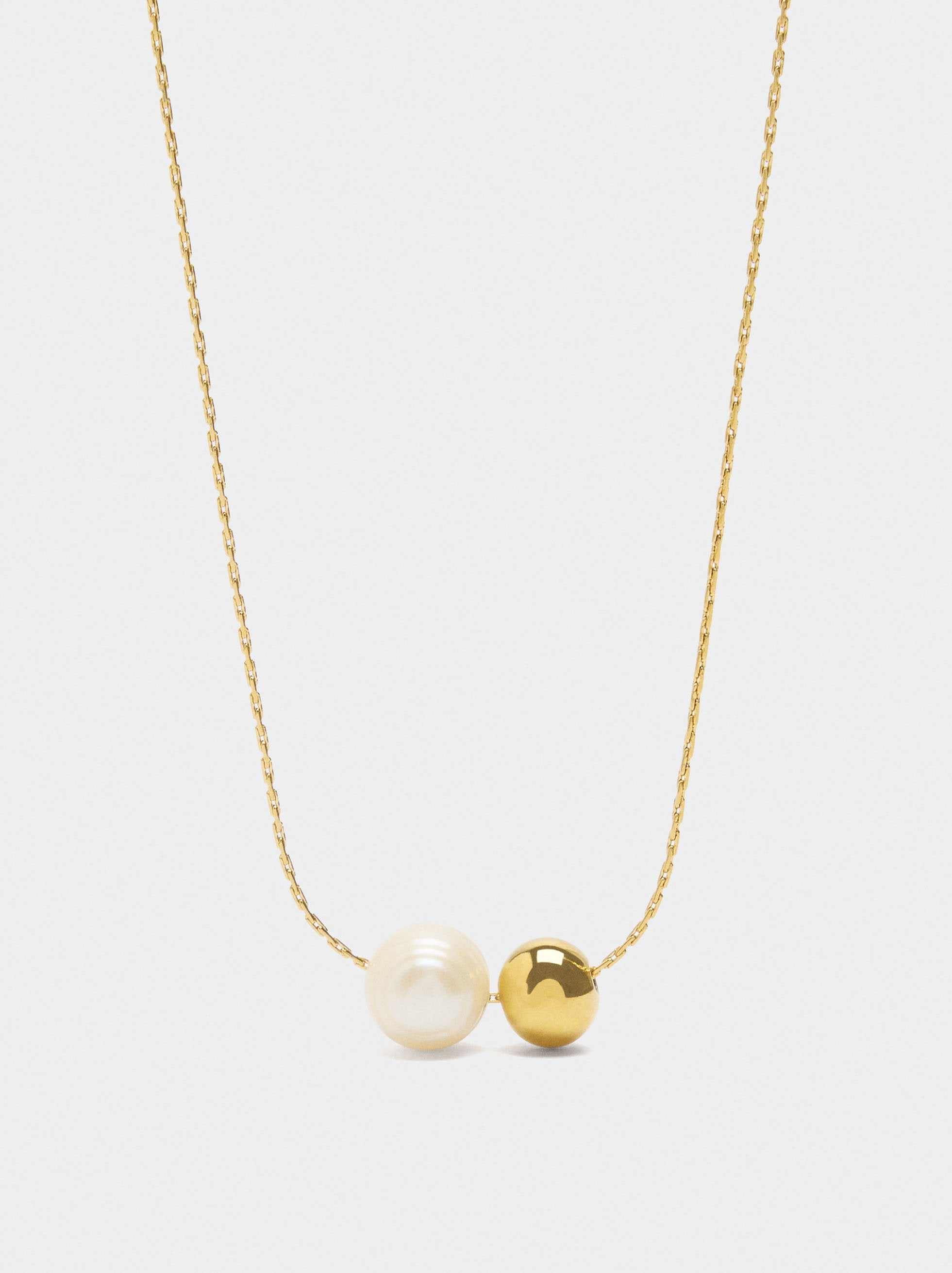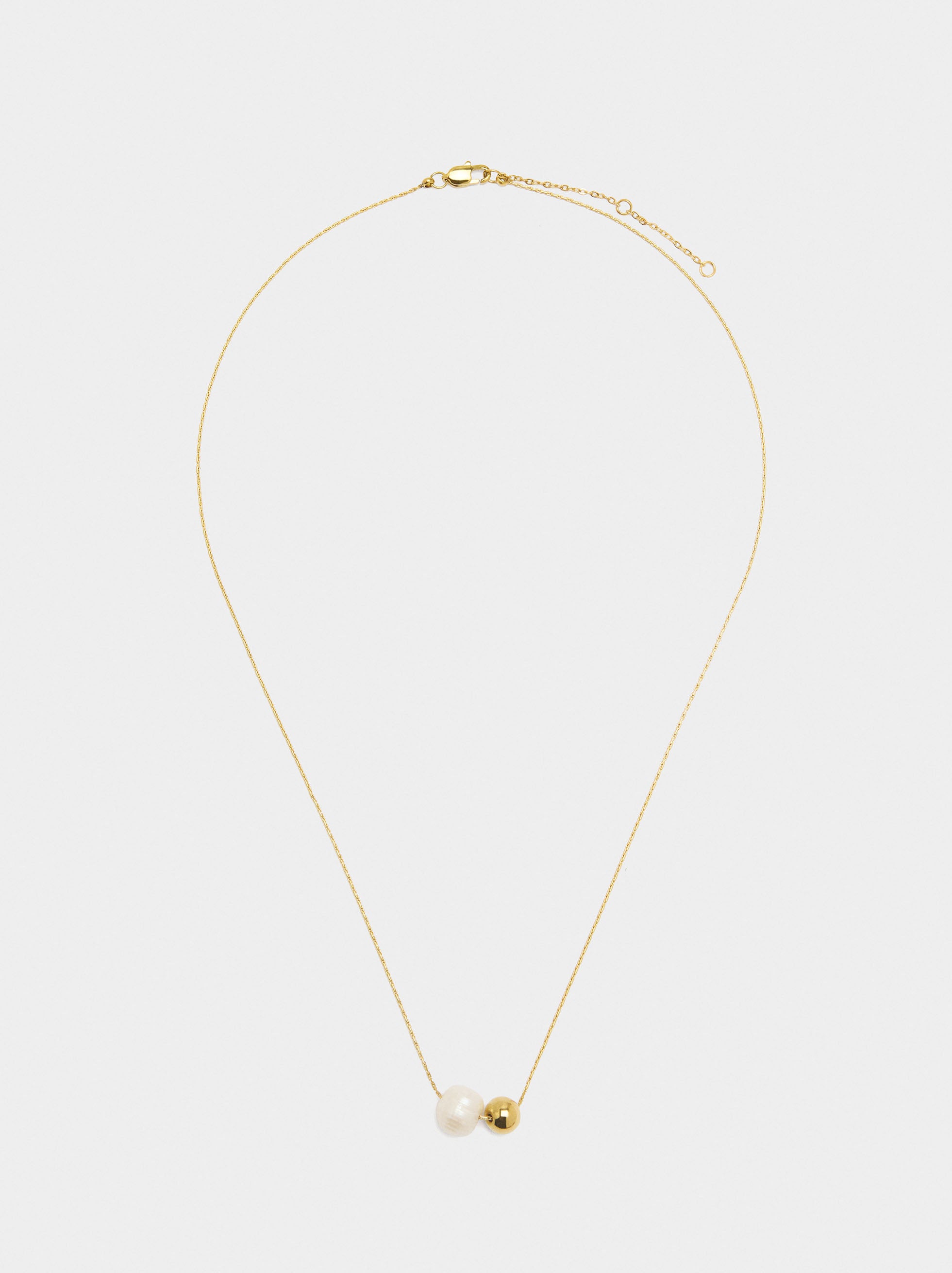 Collar Con Perla Y Cuenta De Acero Inoxidable