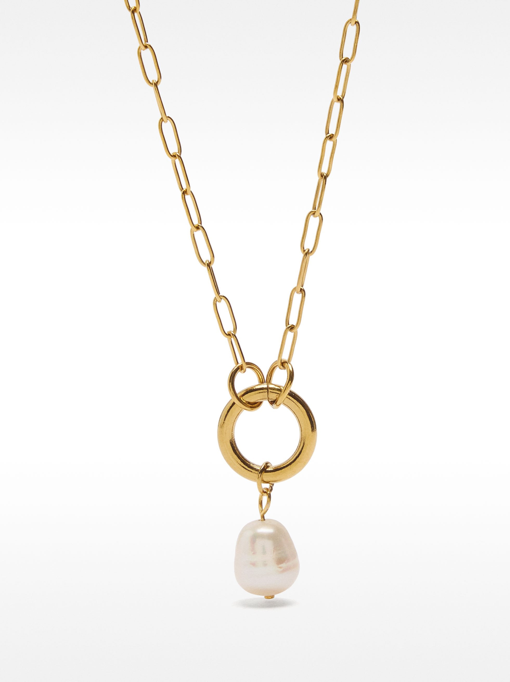Collar De Eslabones Con Perla De Agua Dulce - Acero Inoxidable