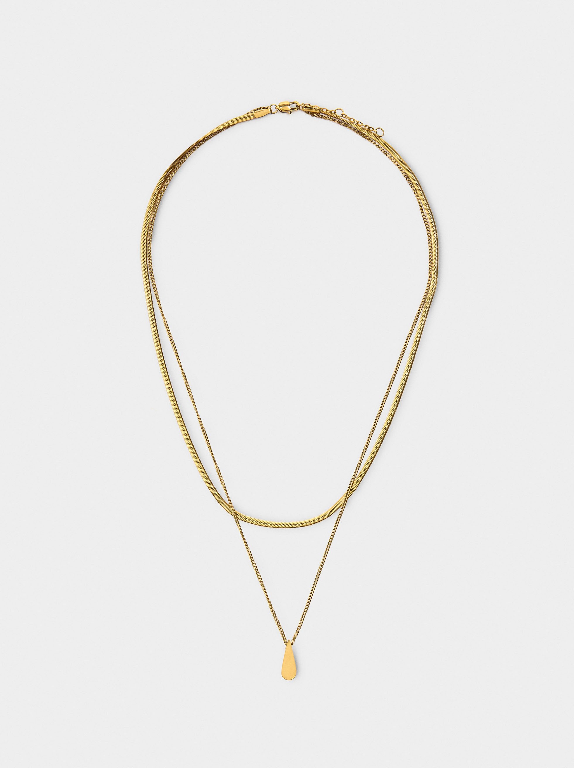 Collar Efecto Doble Con Lágrima - Acero Inoxidable