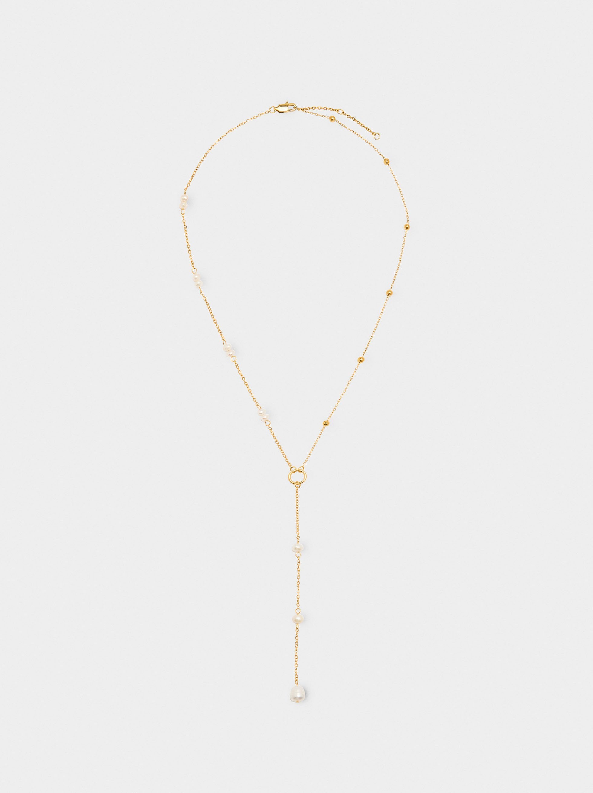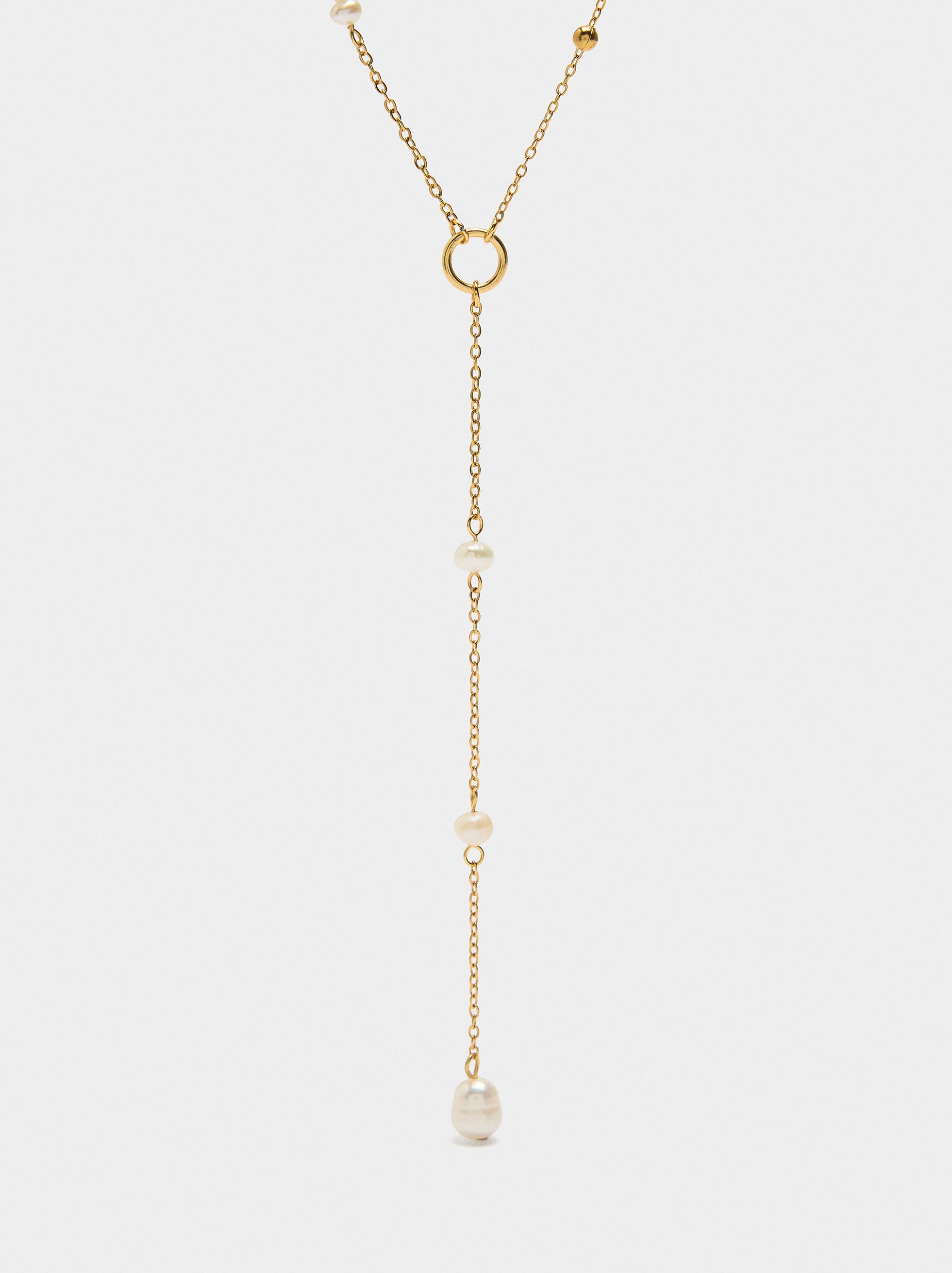 Collar Largo Con Perlas De Agua Dulce - Acero Inoxidable
