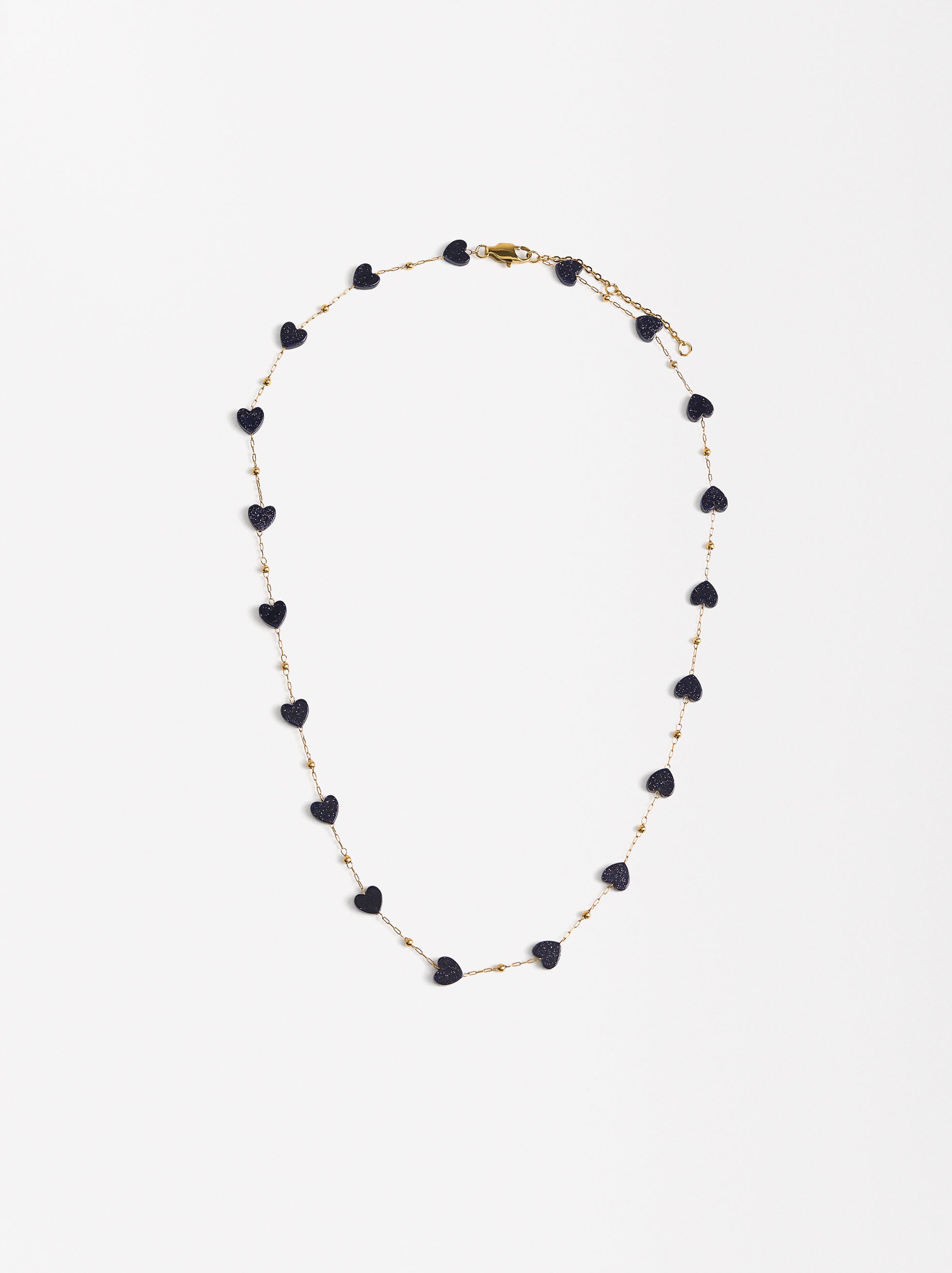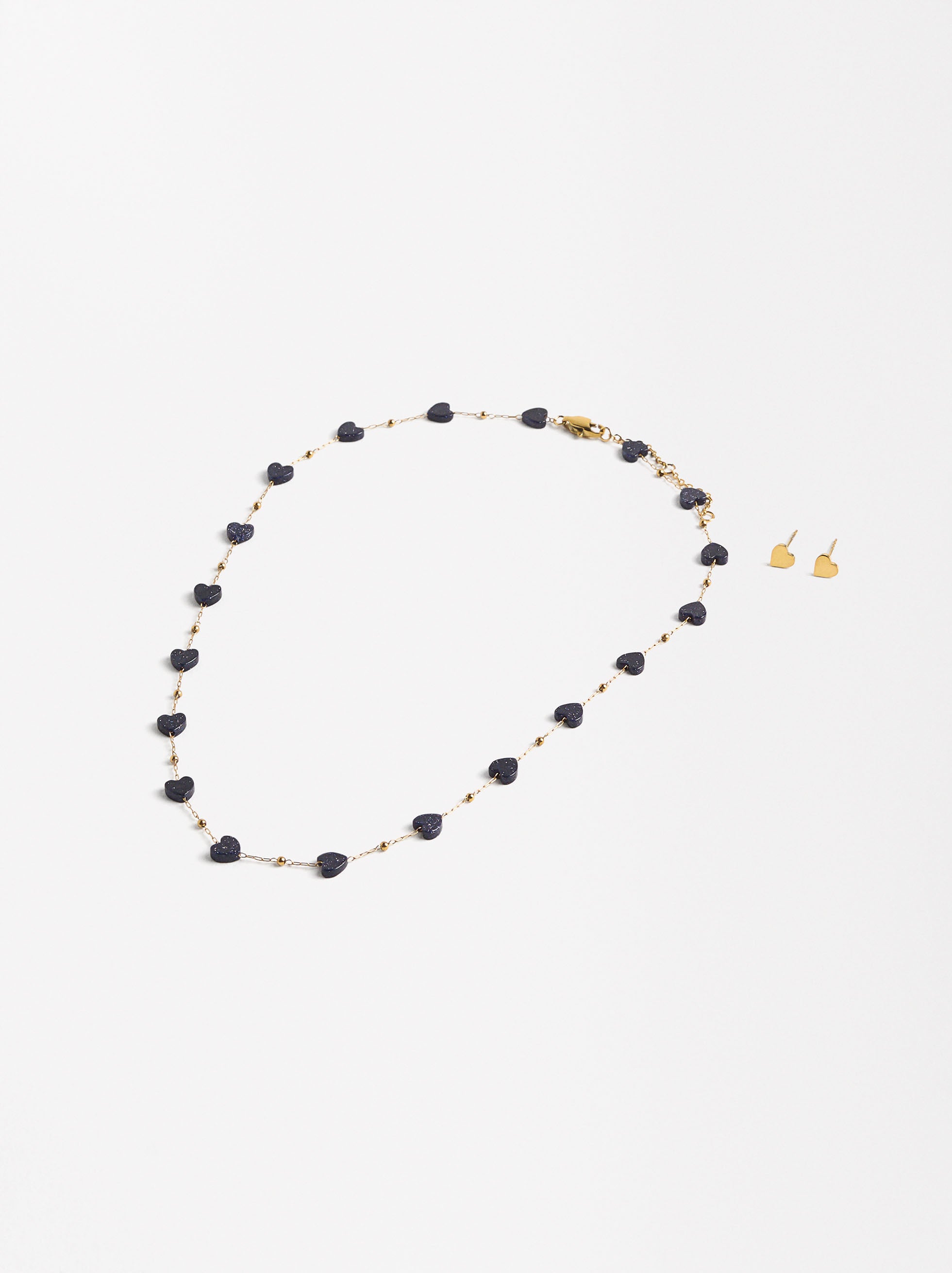Conjunto de collar con corazones de piedra y pendientes dorados en forma de corazón. Nuestros artículos de acero inoxidable se caracterizan por ser resistentes al agua. Destacan por su durabilidad y resistencia, pues ni se oxidan ni se destiñen. En nuestra colección de acero inoxidable encontrarás los complementos ideales tanto para usar a diaro como para ocasiones especiales.