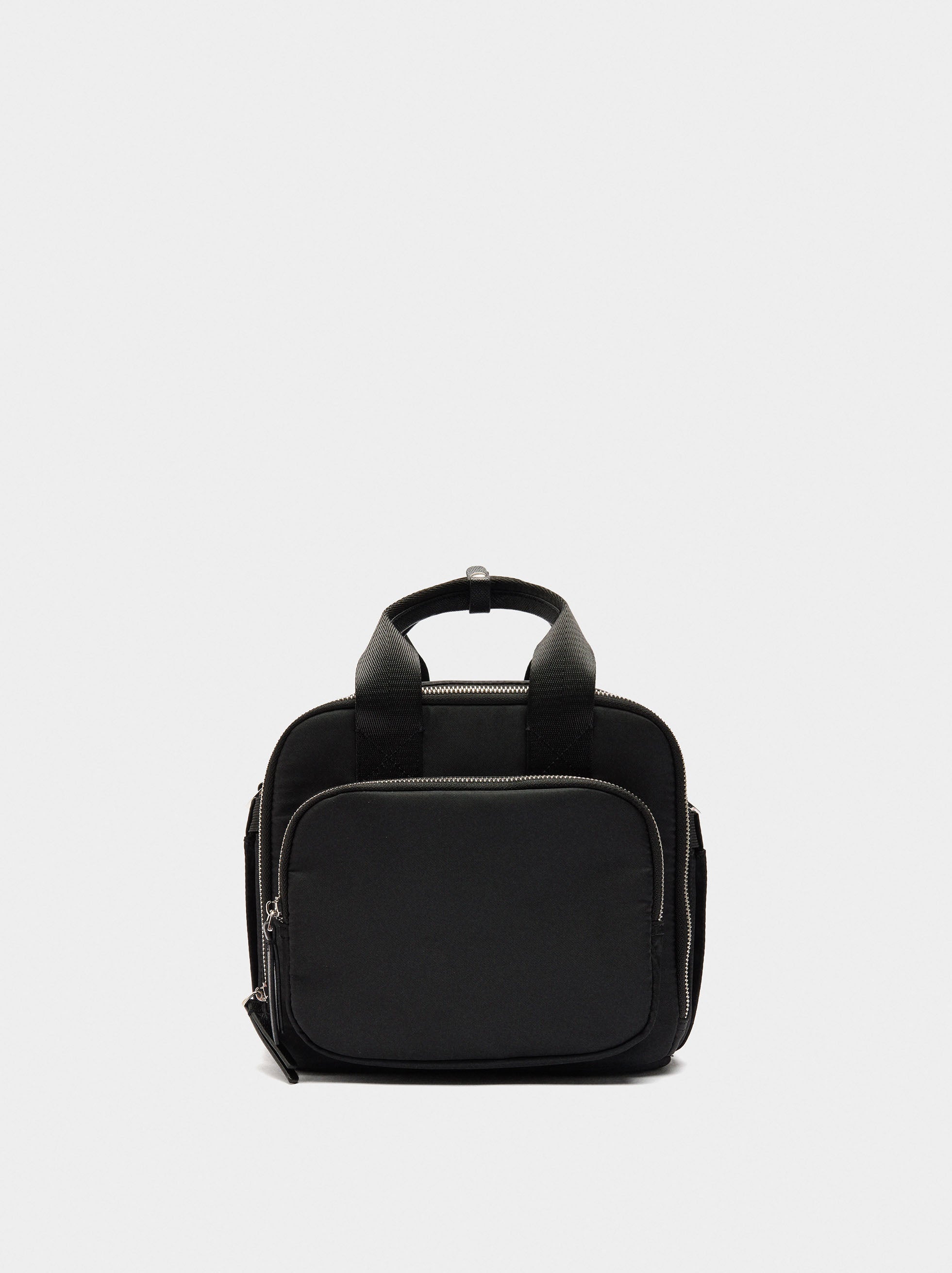 Bolsa porta-alimentos de nylon de tamaño medio. Compartimento en la parte delantera y bolsillos laterales. Aislamiento interior. Asas de mano fijas. Bandolera ajustable y extraíble.