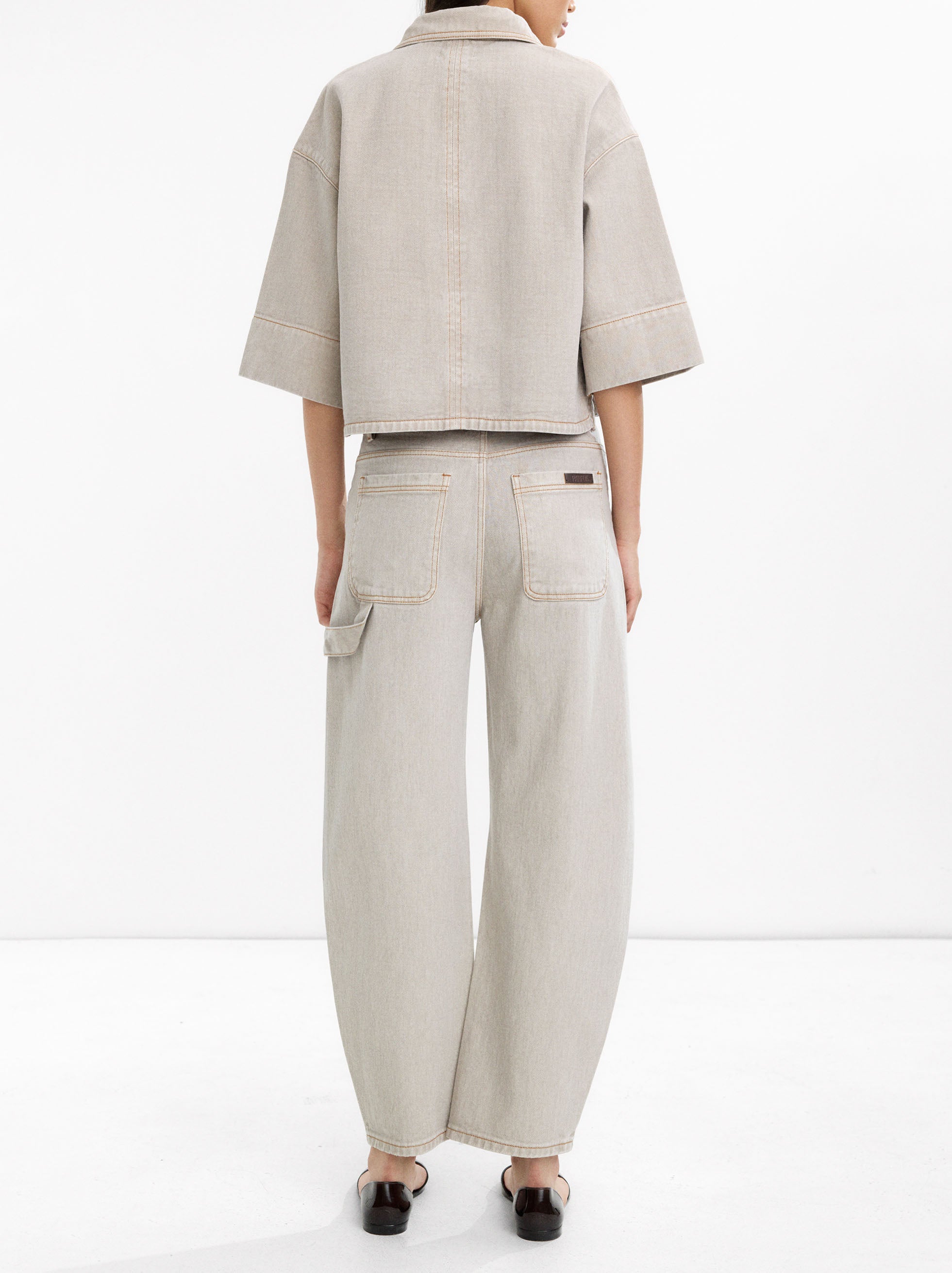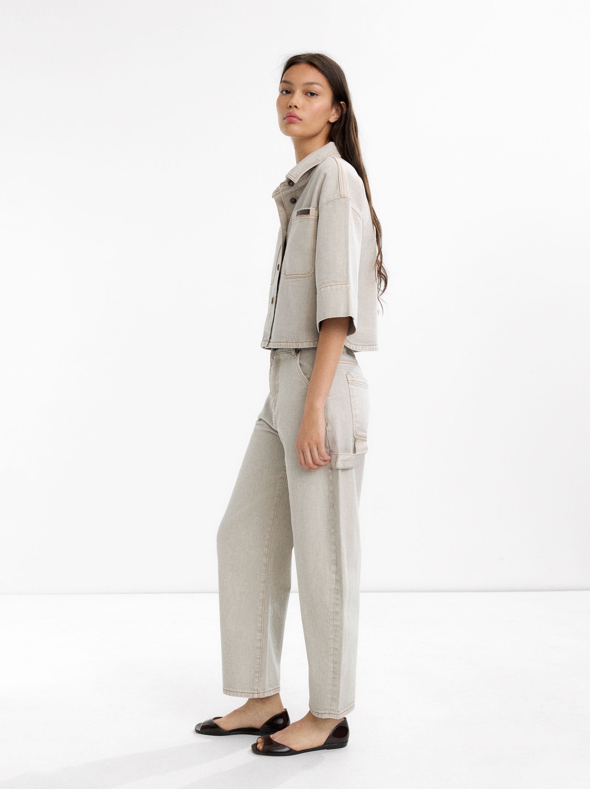 Camisa denim con bolsillos laterales. Confeccionada en 100% algodón. Cuello de solapa. Manga corta. Cierre con botones. La modelo mide 1,80 m y lleva la talla S.