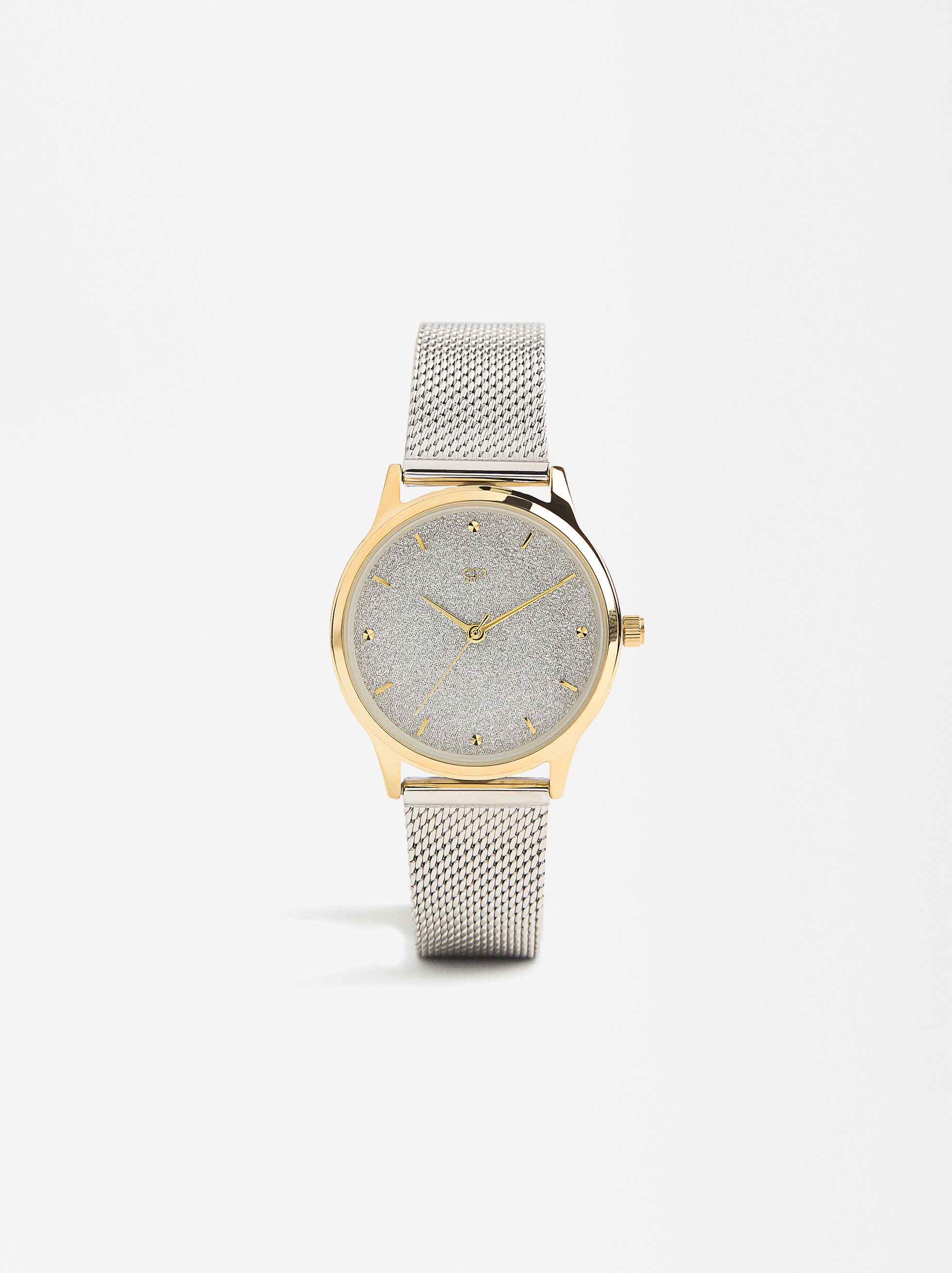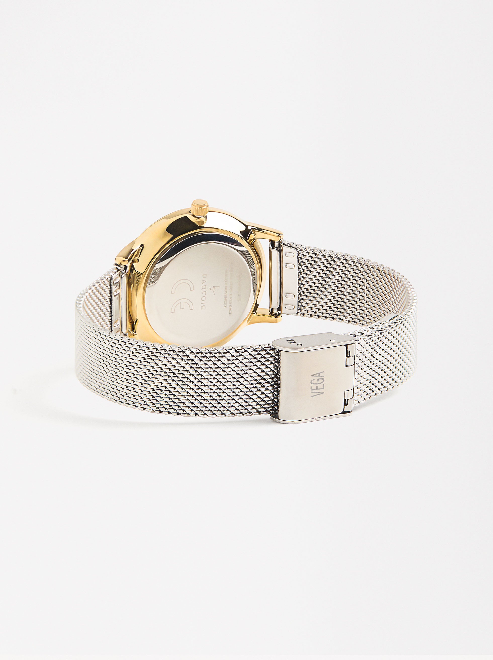 Reloj Pulsera De Malla Metálica Bicolor De Acero
