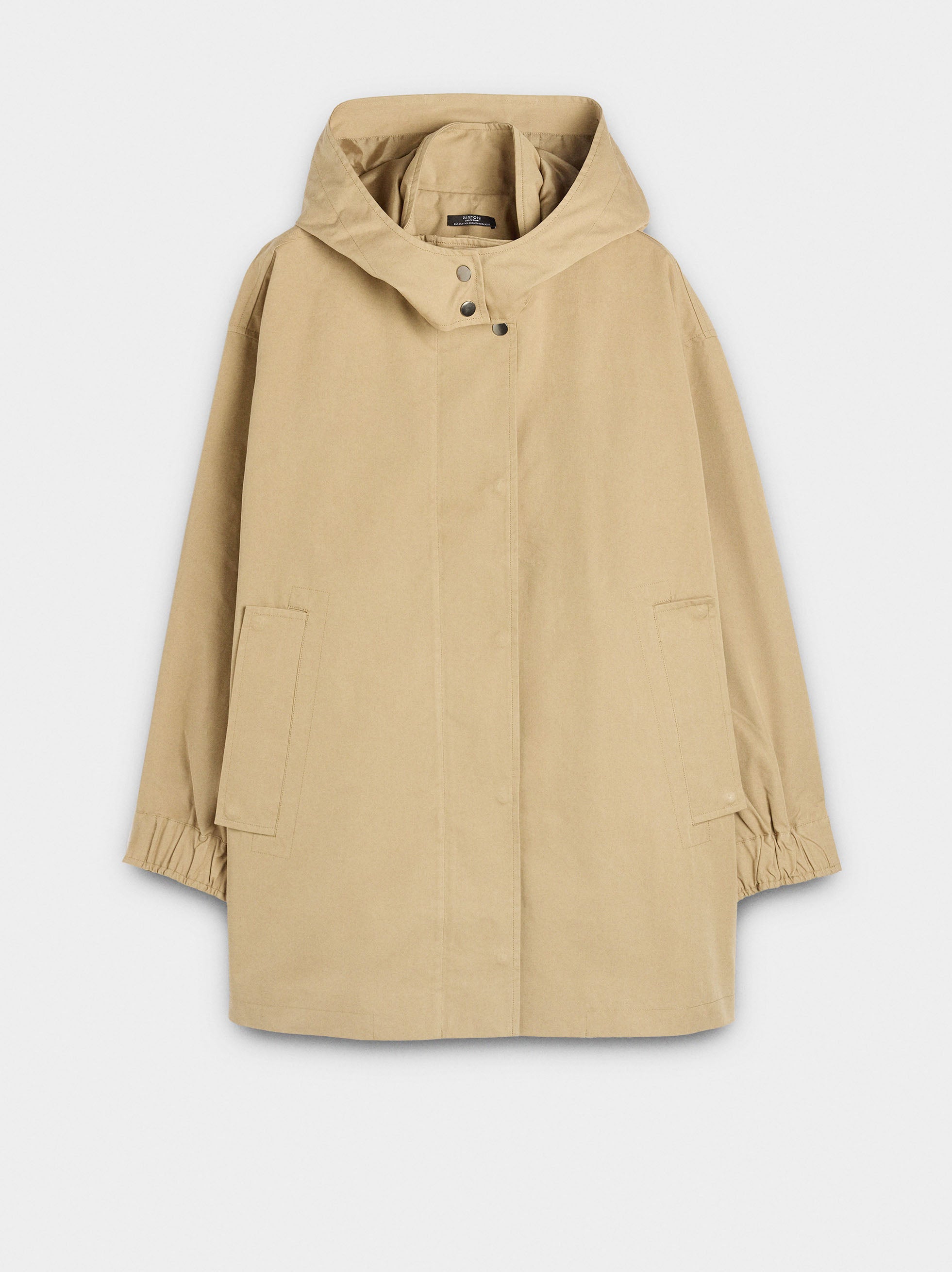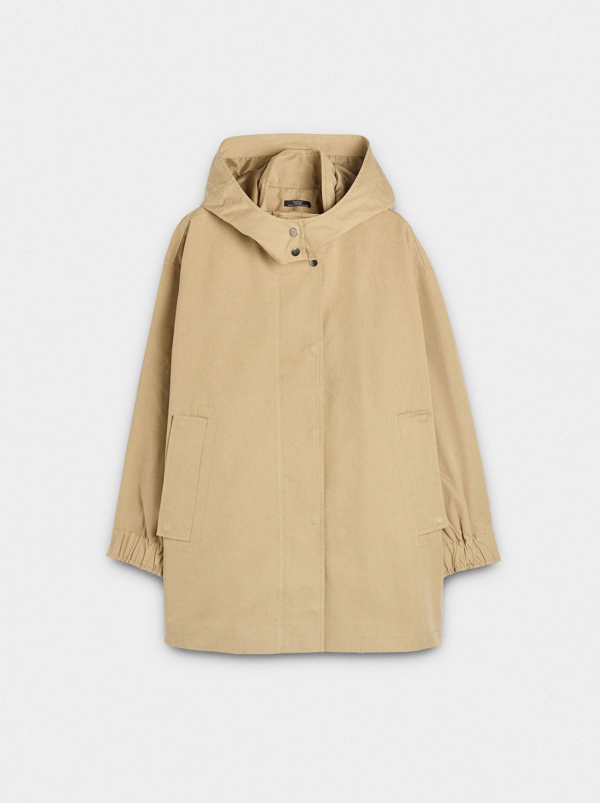 Parka de cuello alto con capucha extraíble. Manga larga con puños elásticos y botones. Bolsillos laterales con solapa. Abertura con botones y cierre de cremallera oculto. La modelo mide 1,75 m y lleva la talla XS-S.