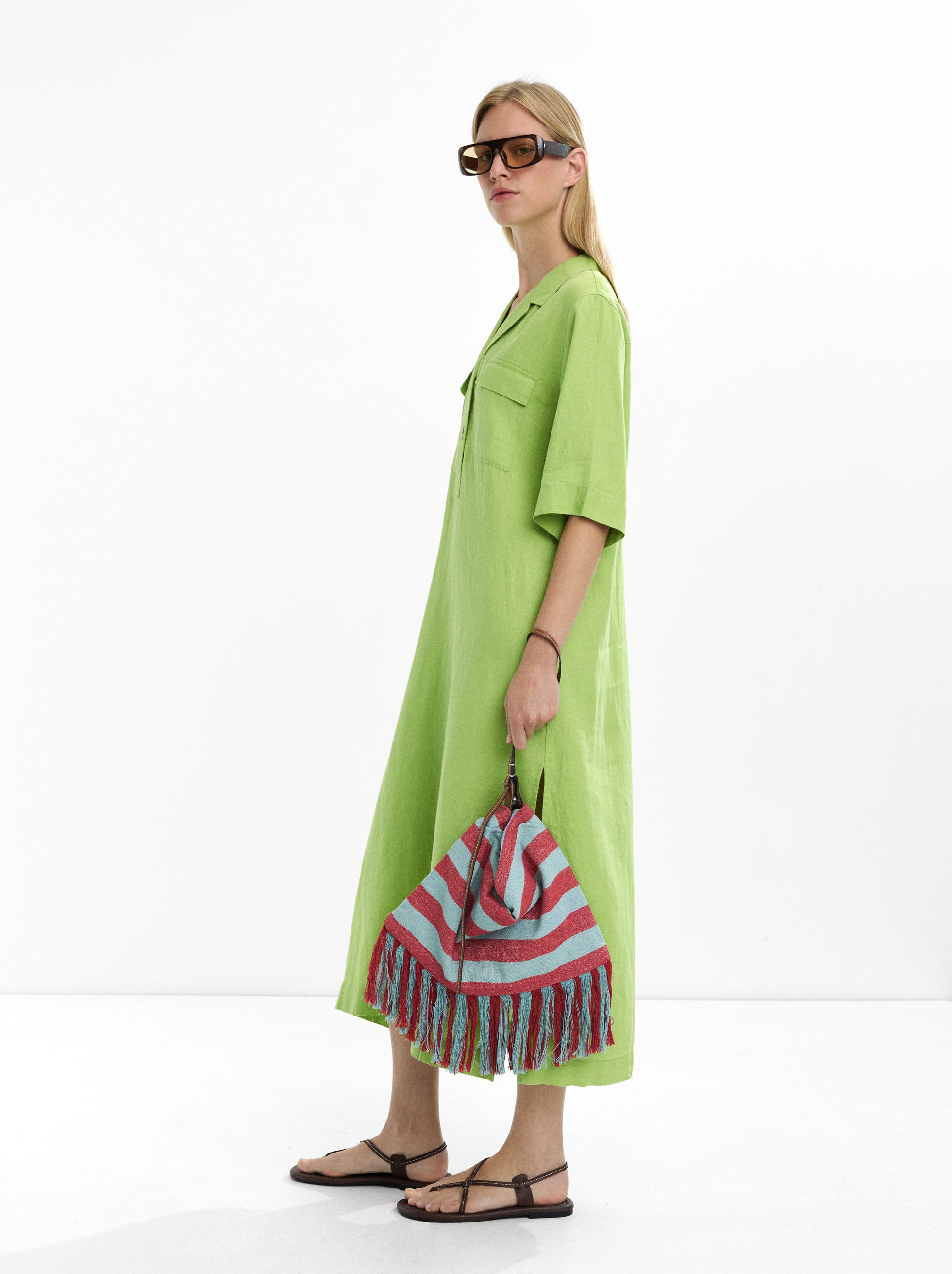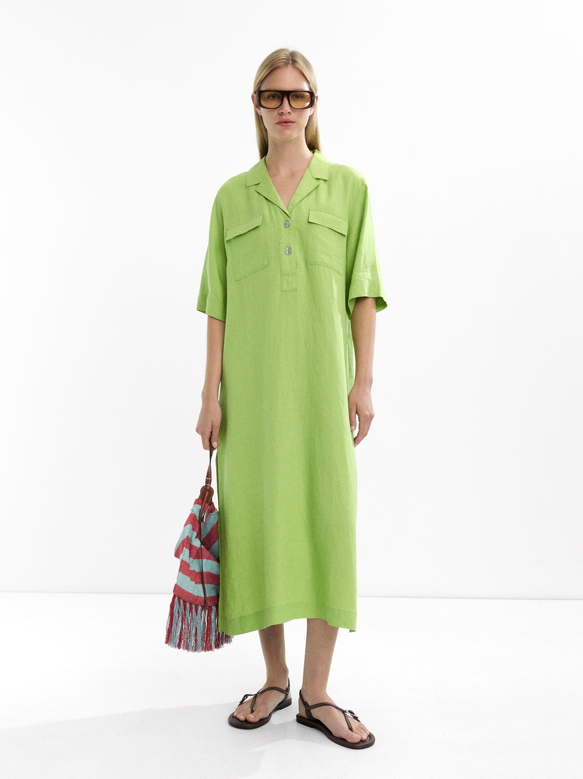 Vestido Camisero Largo 100% Lino