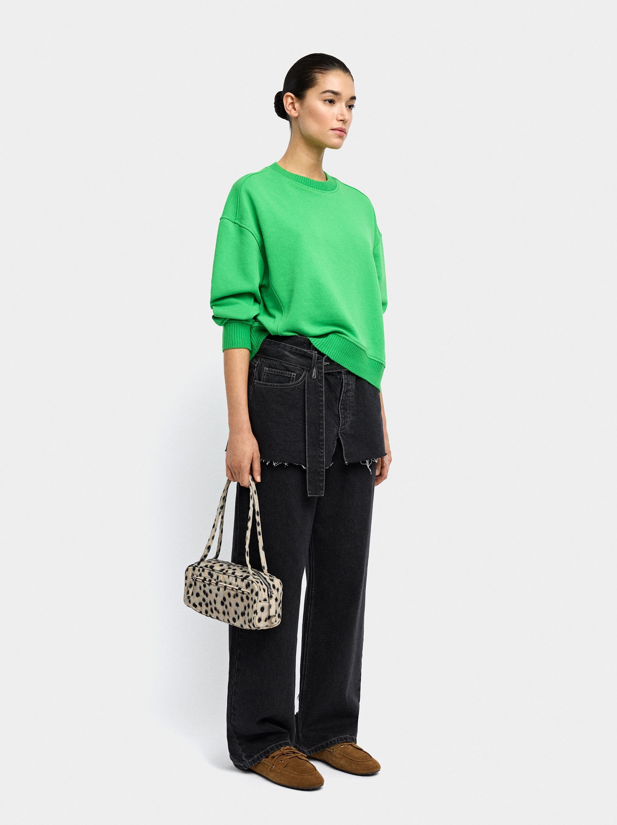 Sudadera de algodón con bordes canalados. Costuras marcadas. Cuello redondo. Manga larga. La modelo mide 1,75 m y lleva la talla S.