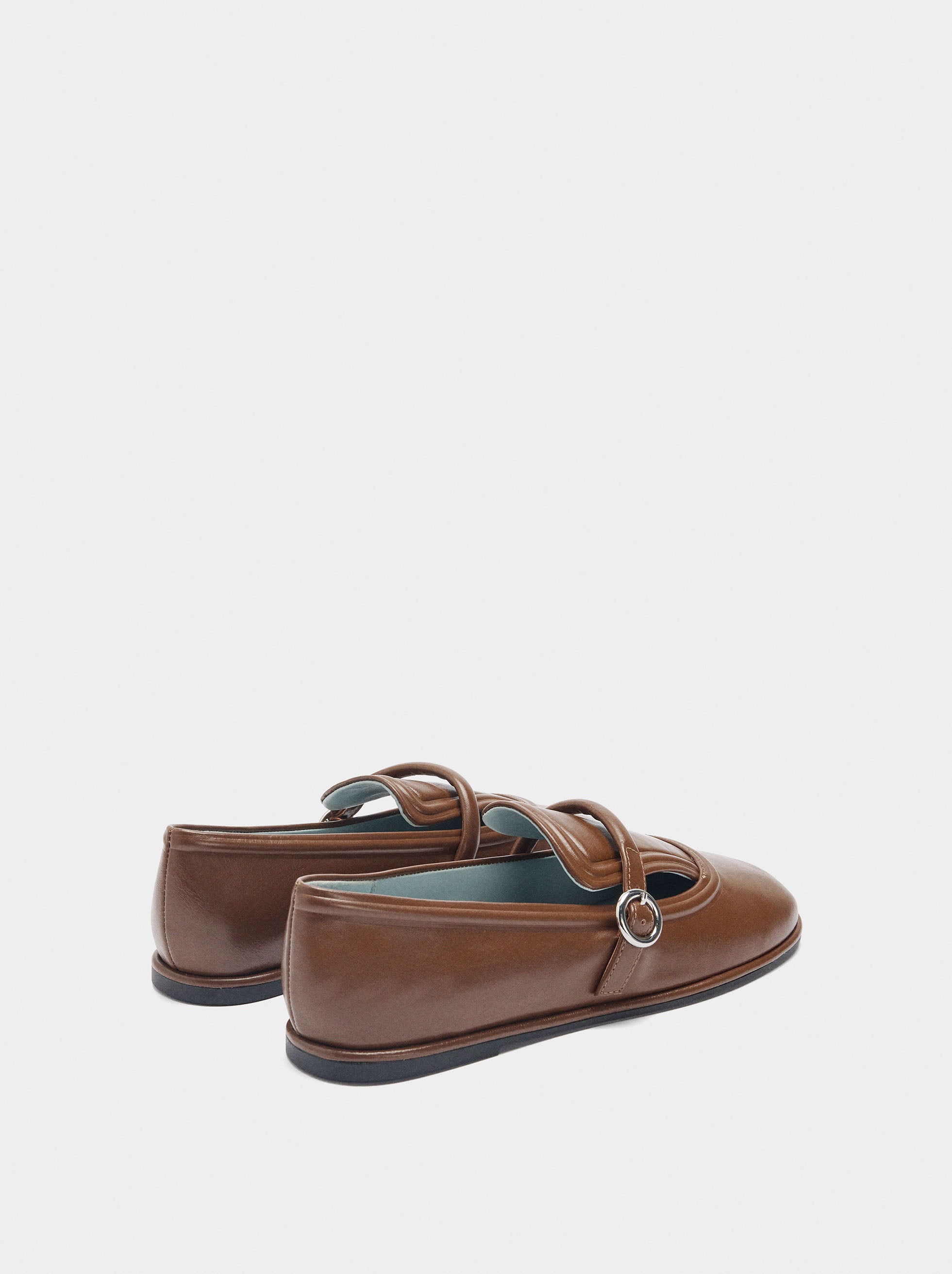 Zapatos planos de piel. Tira en el empeine con hebilla redonda para ajustar sobre la lengüeta. Plantilla lisa. Punta redonda. Suela de poliuretano termoplástico. Combina el estilo clásico con un toque moderno.
