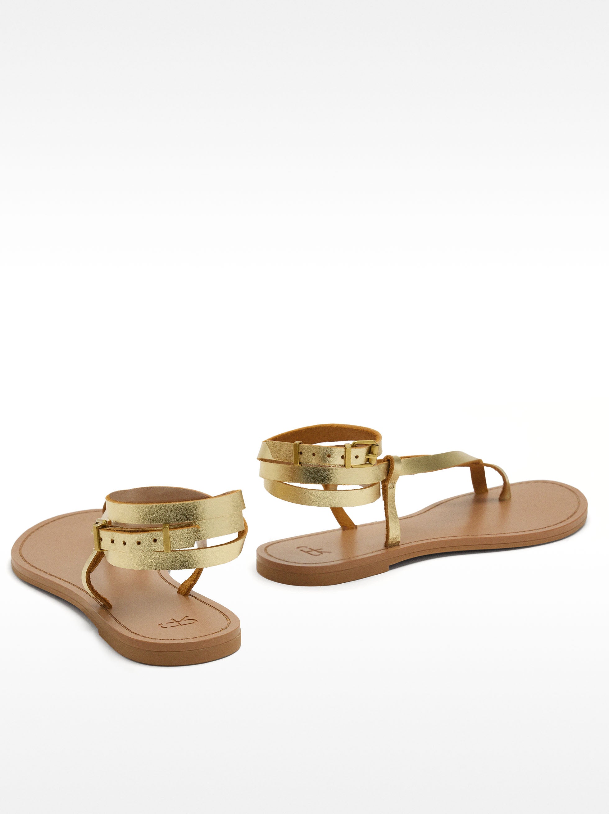 Sandalias Planas De Piel Con Tiras Metalizadas