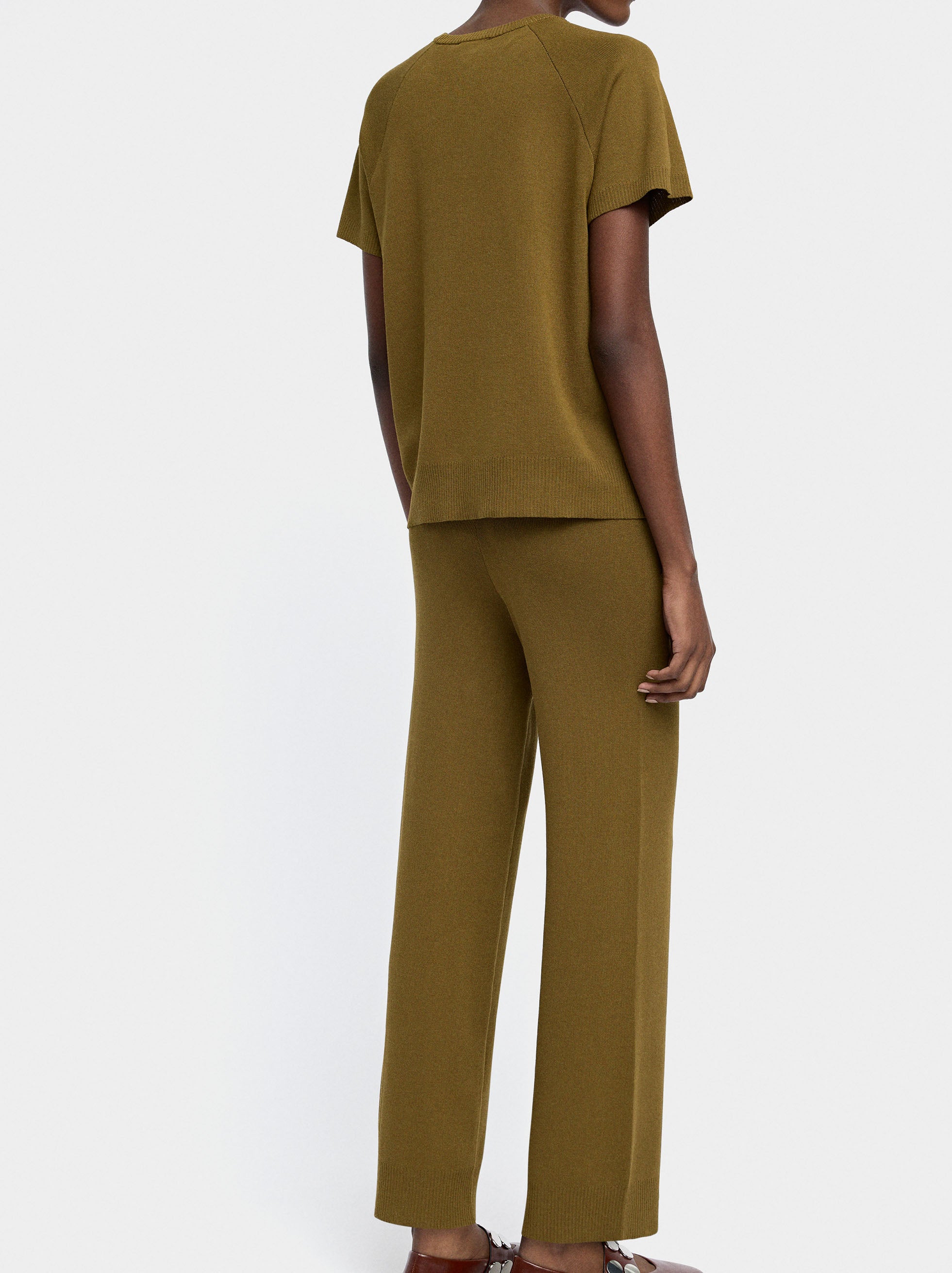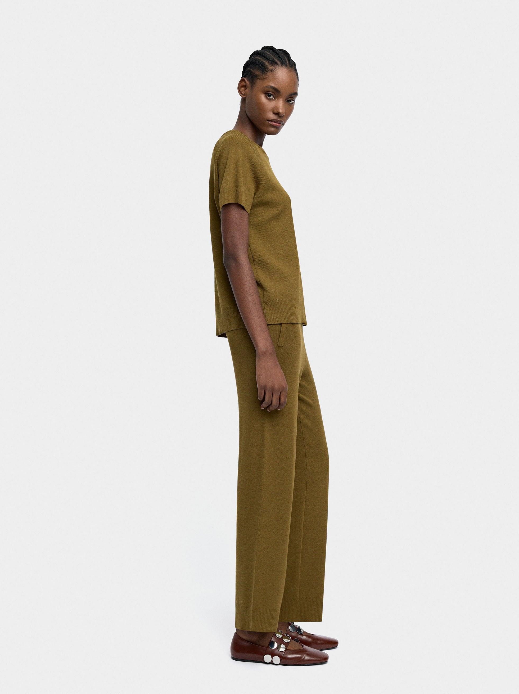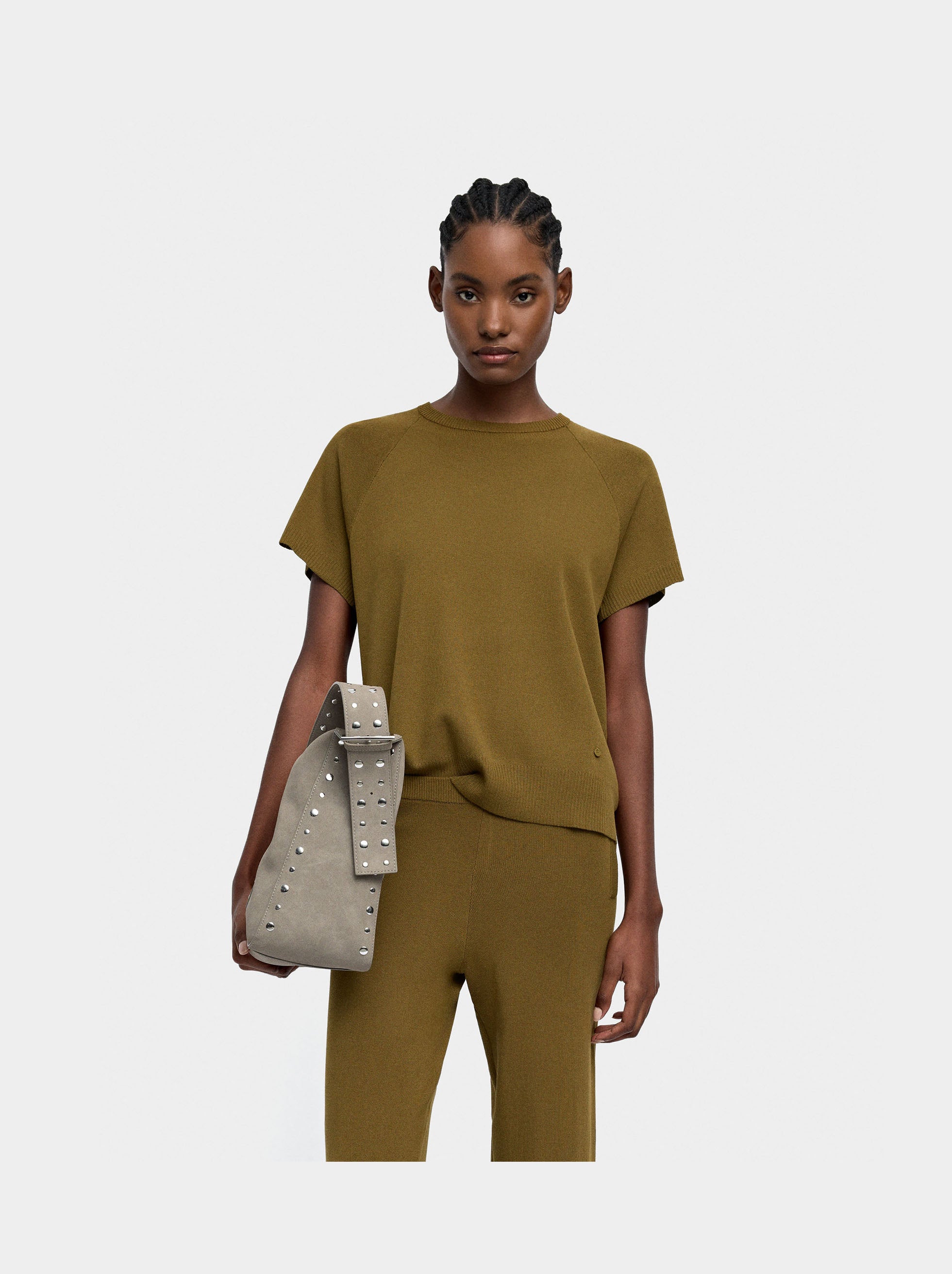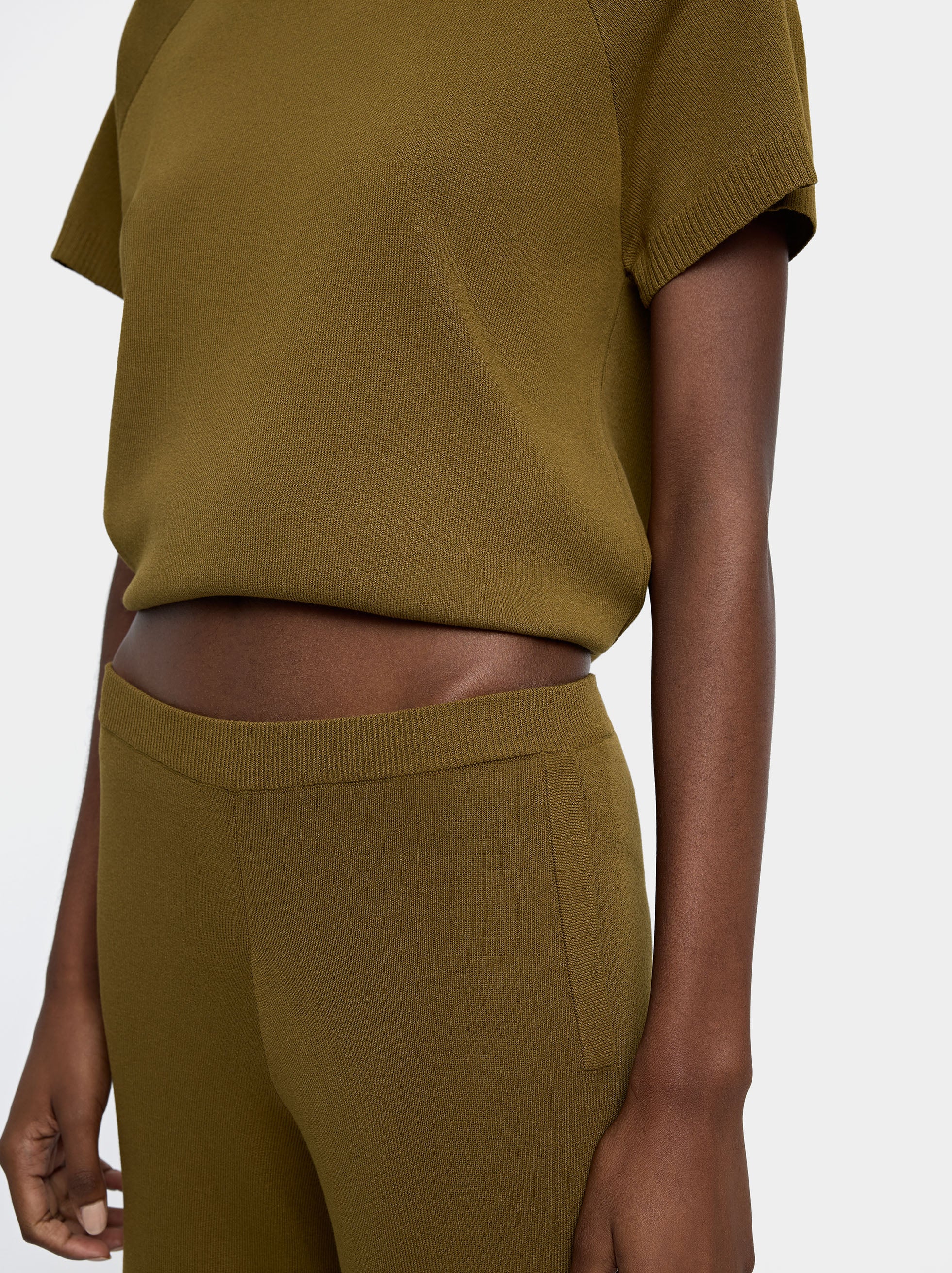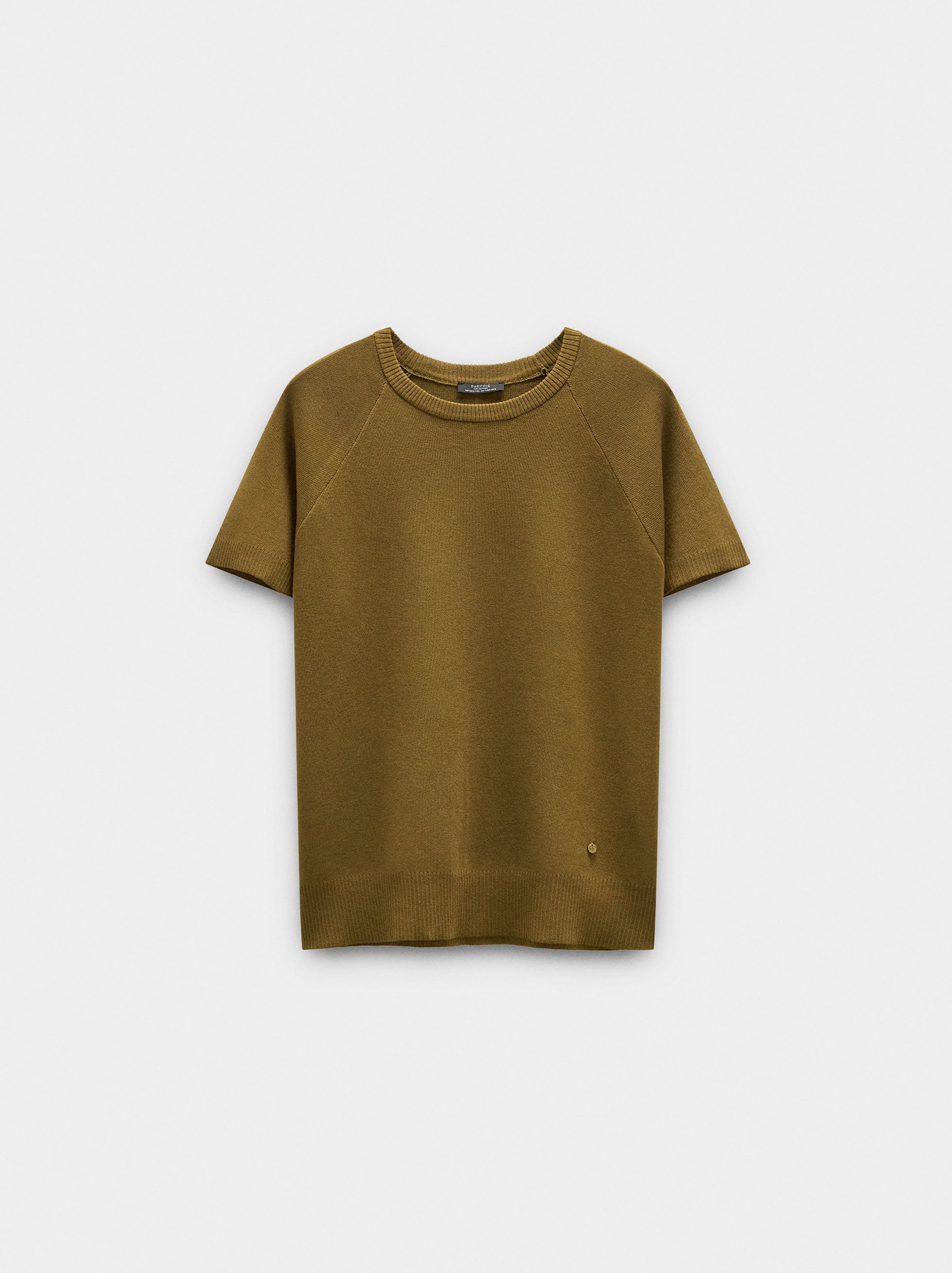 Jersey de punto. Cuello redondo. Manga corta. Bordes canalados. La modelo mide 1,80 m y lleva la talla XS-S.