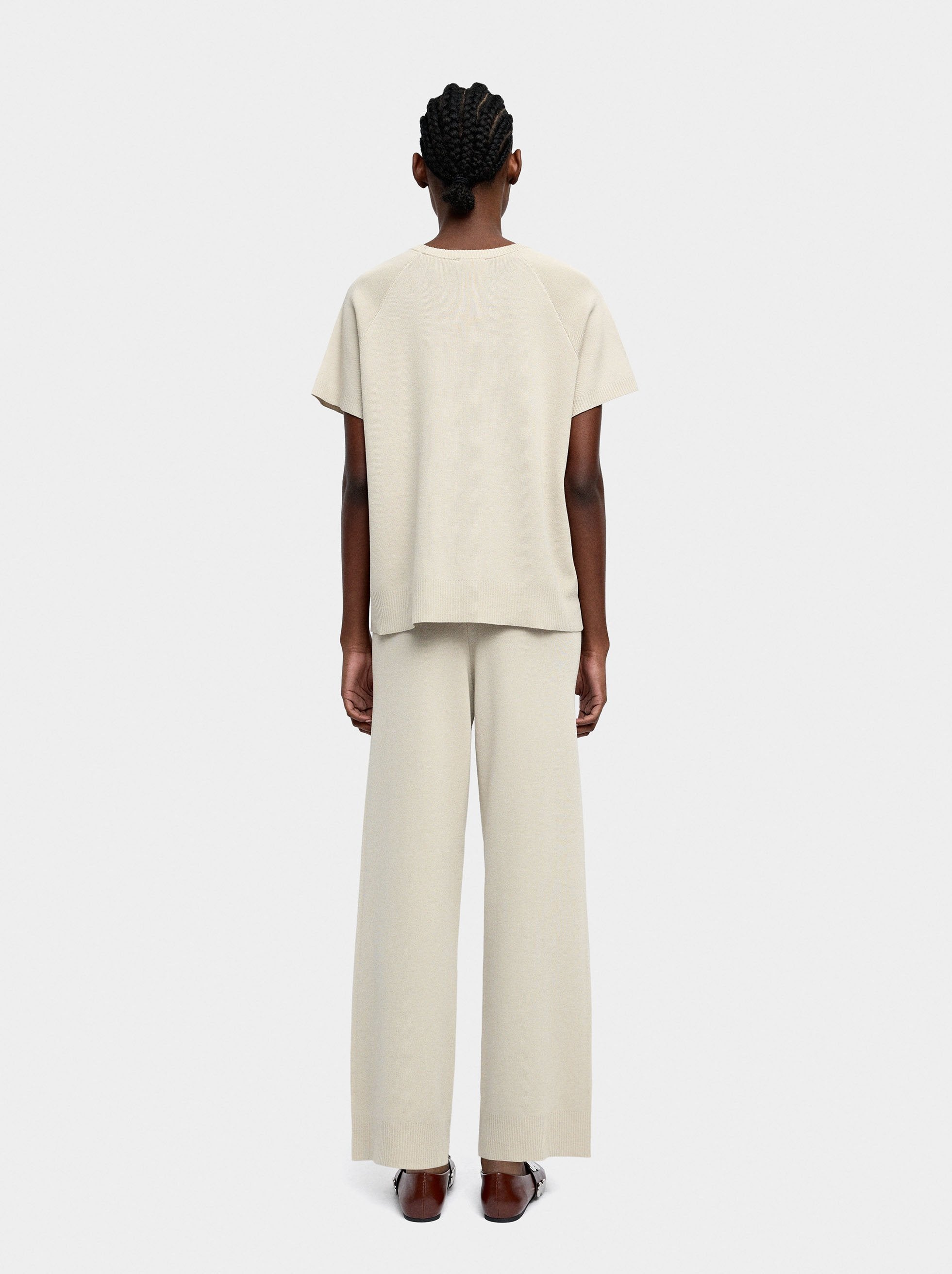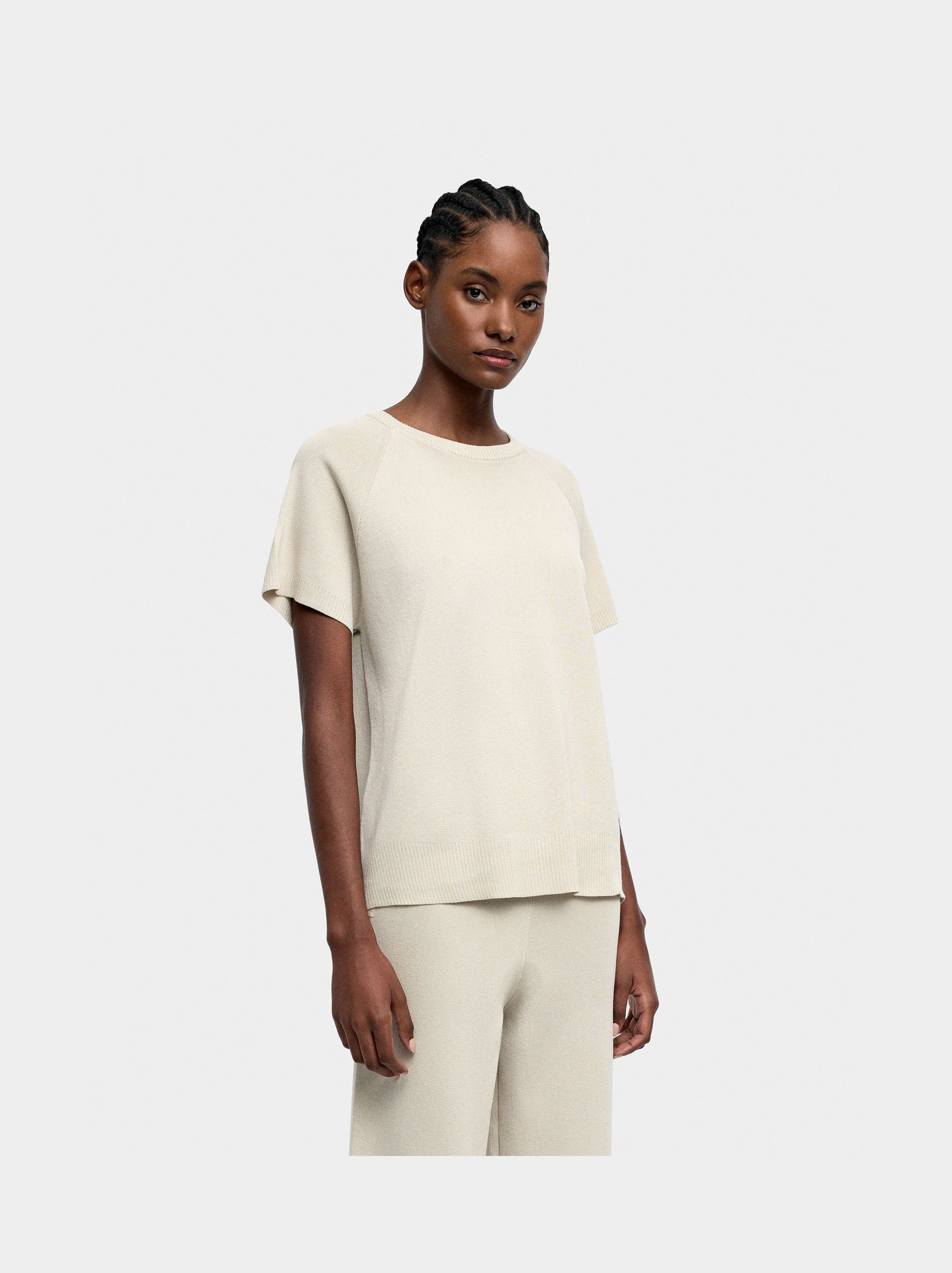 Jersey de punto. Cuello redondo. Manga corta. Bordes canalados. La modelo mide 1,80 m y lleva la talla XS-S.